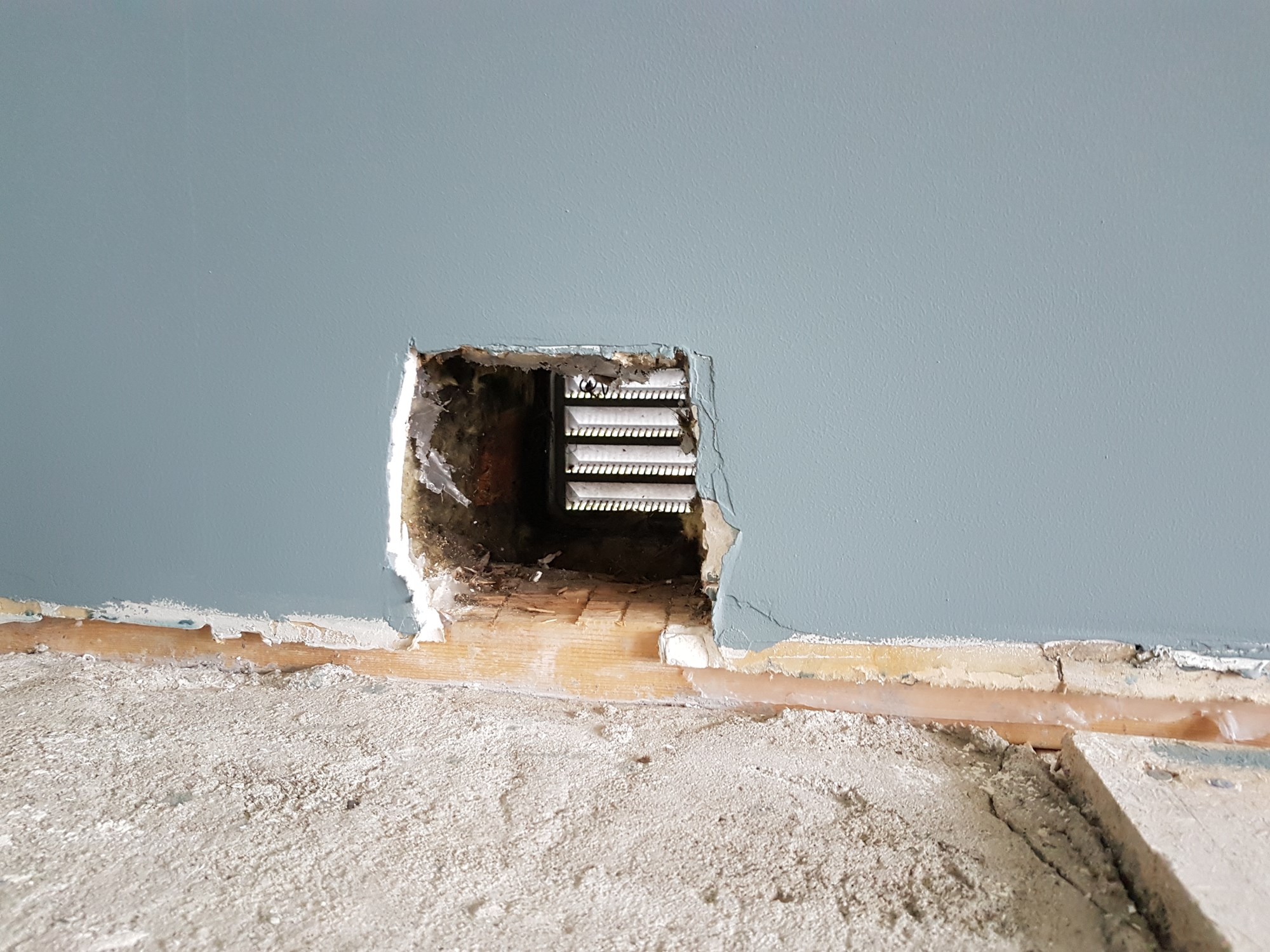 Har revet peisen. Hva bør jeg gjøre med åpningen i ytterveggen? Dette var spjeld til peis og er plassert helt nederst på veggen.