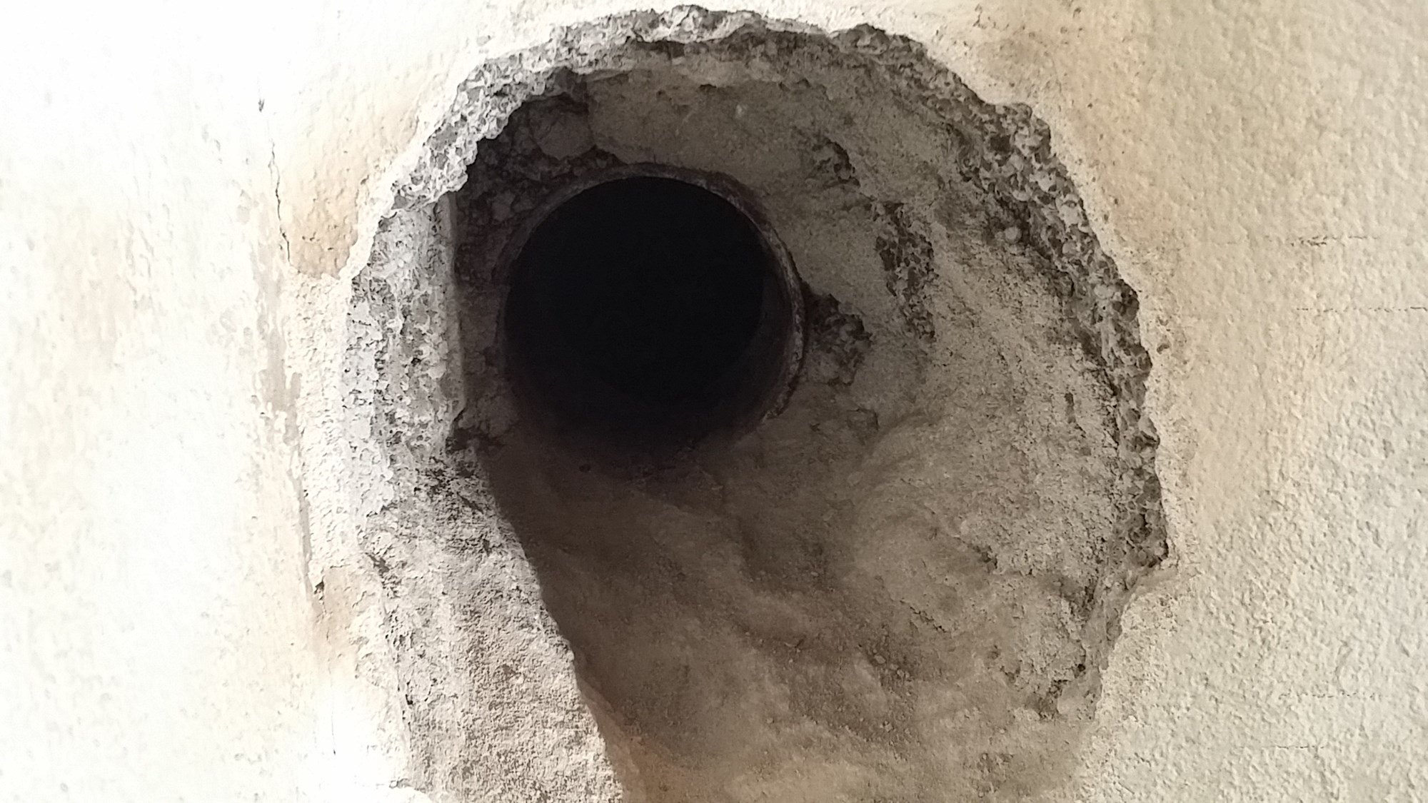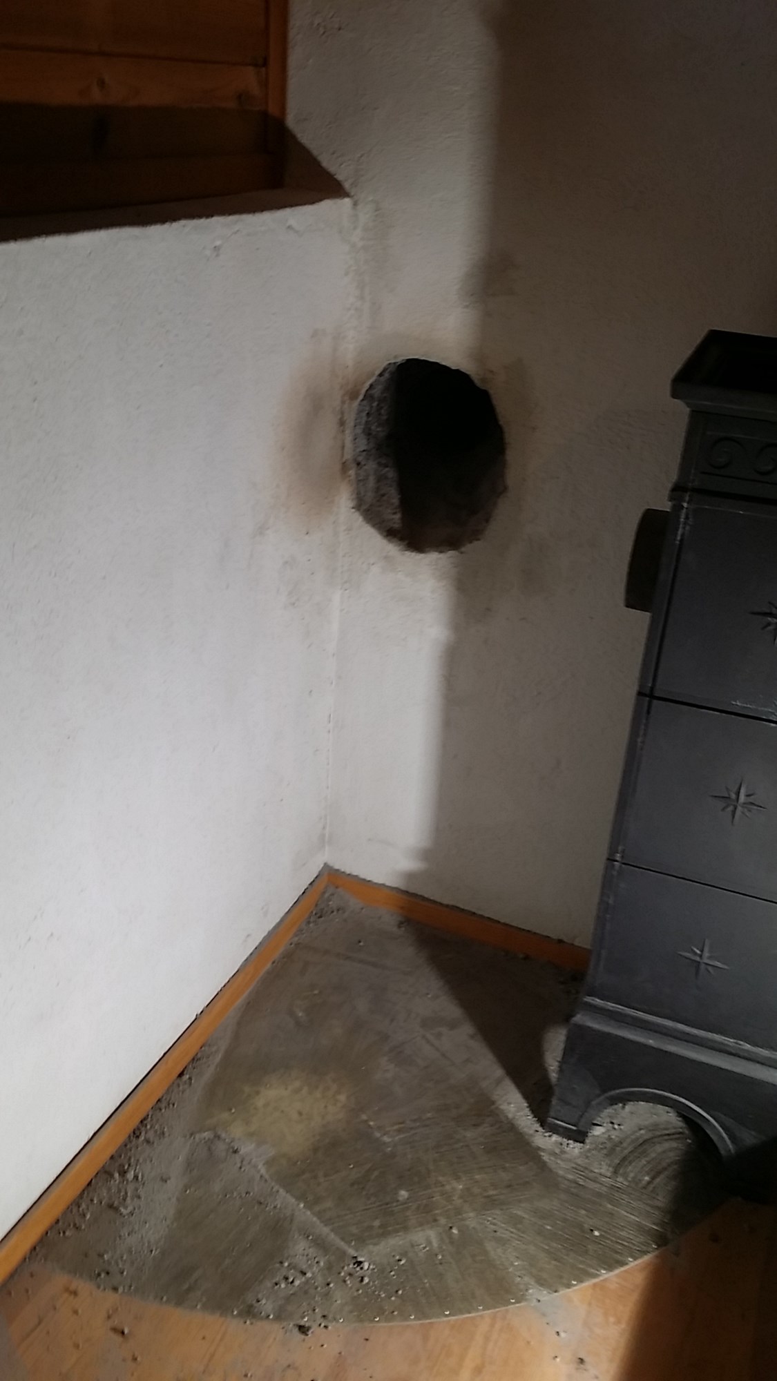 Jeg har fjernet ovnen i trappe-repoet, meislet og tatt vekk røret fra ovnen inn til pipa. Vi har en annen ovn i stua og kjelleren så pipa vil være i bruk. Det er ganske dypt inn til et nytt jern rør som går inn til pipa. Er dette riktig fremgangsmåte for å tette hullet nå?: