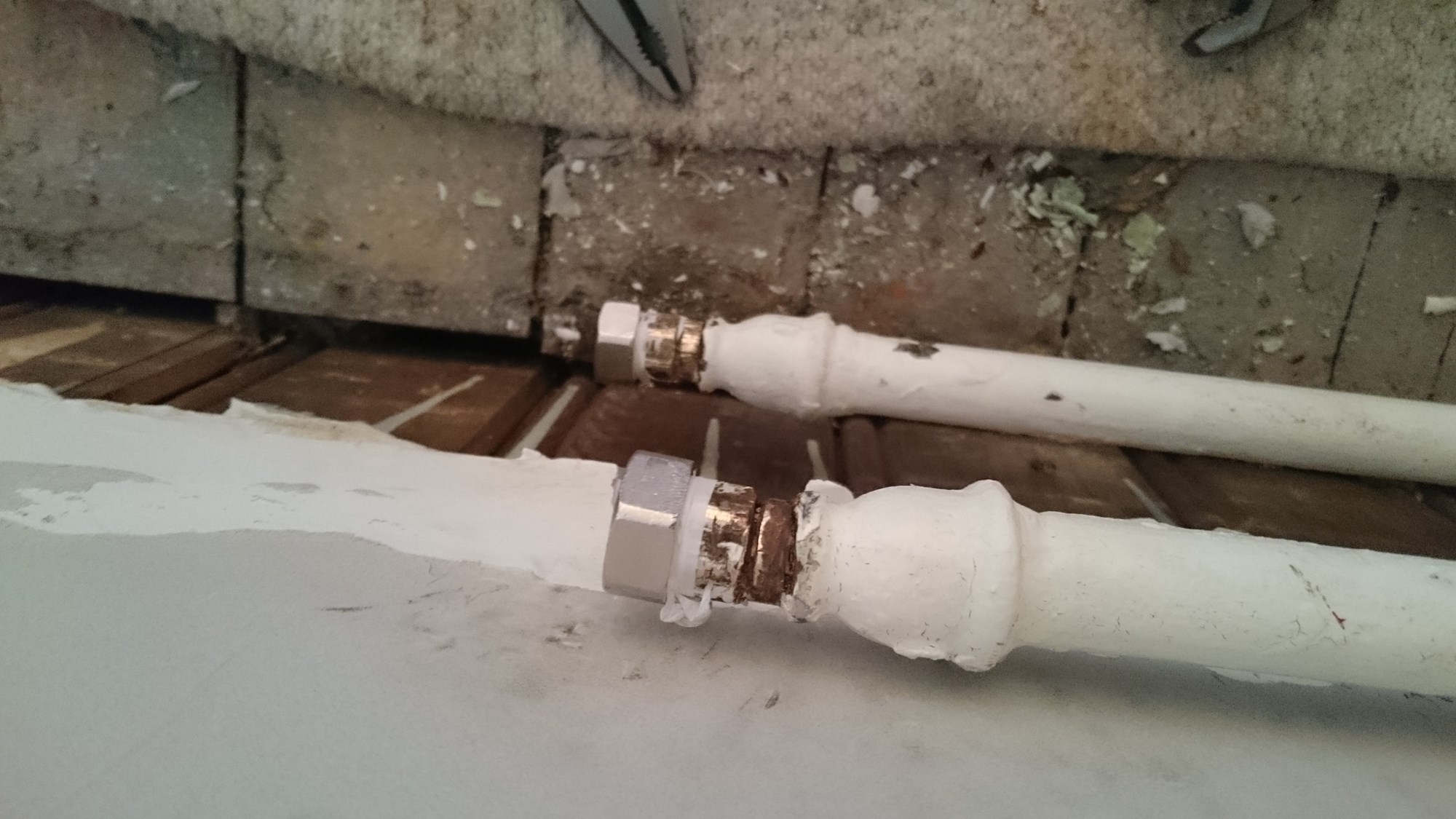 Dette gikk fint! Hullet i overgangsmuffa var imidlertid mindre enn 1/2. De hadde ikke så små uvendig gjengede plugger på Clas Ohlson så endte med å la den delen stå igjen og plugge den med en innvendig gjenget plugg type 1/2