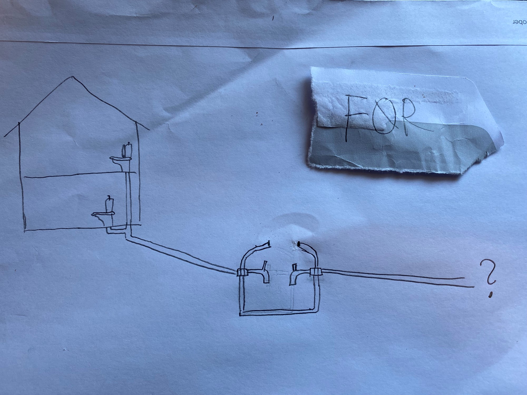 Dette er et forsøk på en prinsippskisse av hvordan leveranser fra toalettene har vært håndtert siden jeg flyttet inn her, og trolig siden huset var nytt på 70-tallet.
