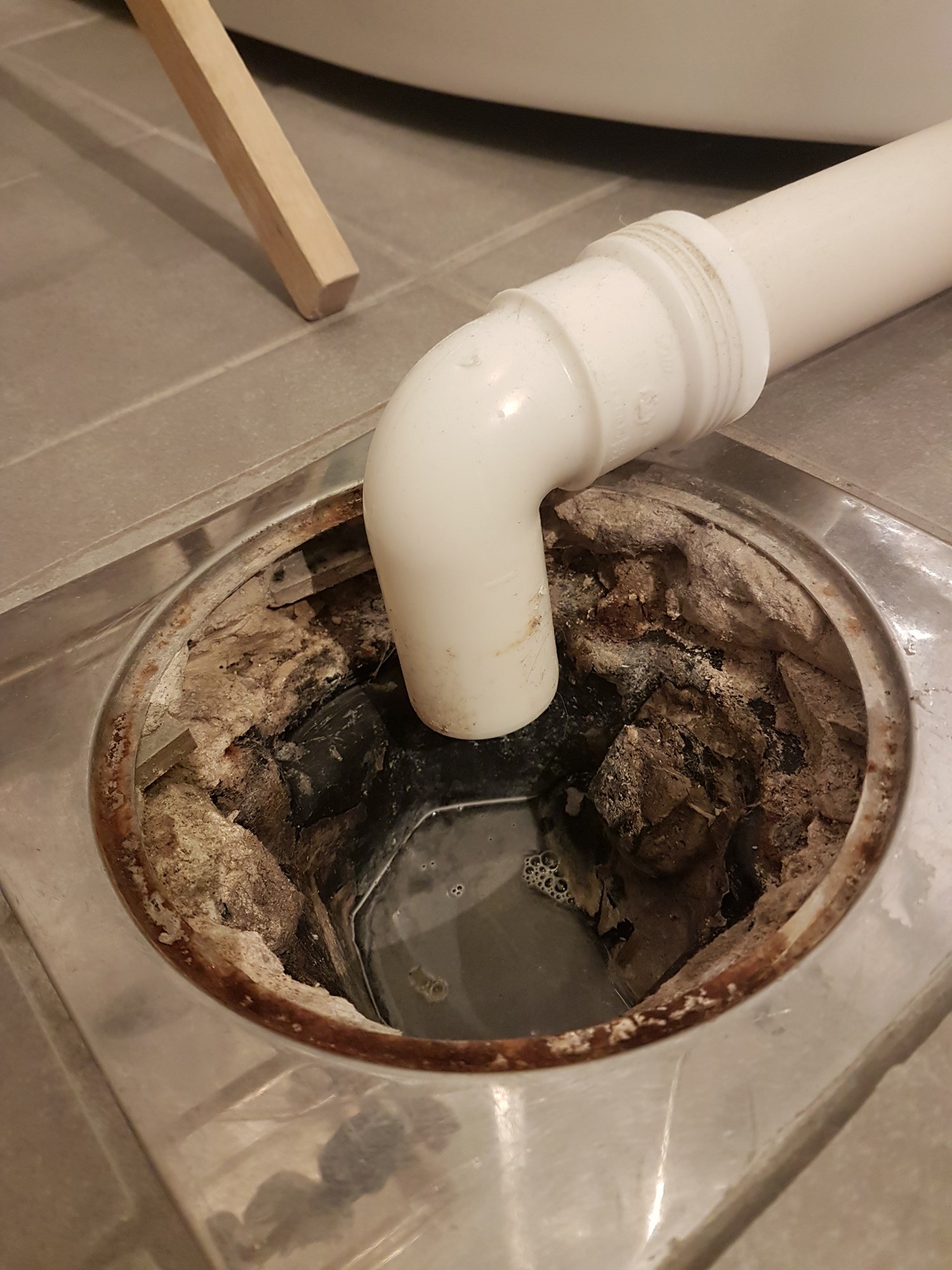 Men, du bør rense opp i sluket ditt. Stikk hånda nedi og ta opp lo, hår og dritt og møkk. Så kan du bruke en gammel oppvaskbørste til å børste rundt med litt såpe, evt salmiakk hvis nesa di orker.
