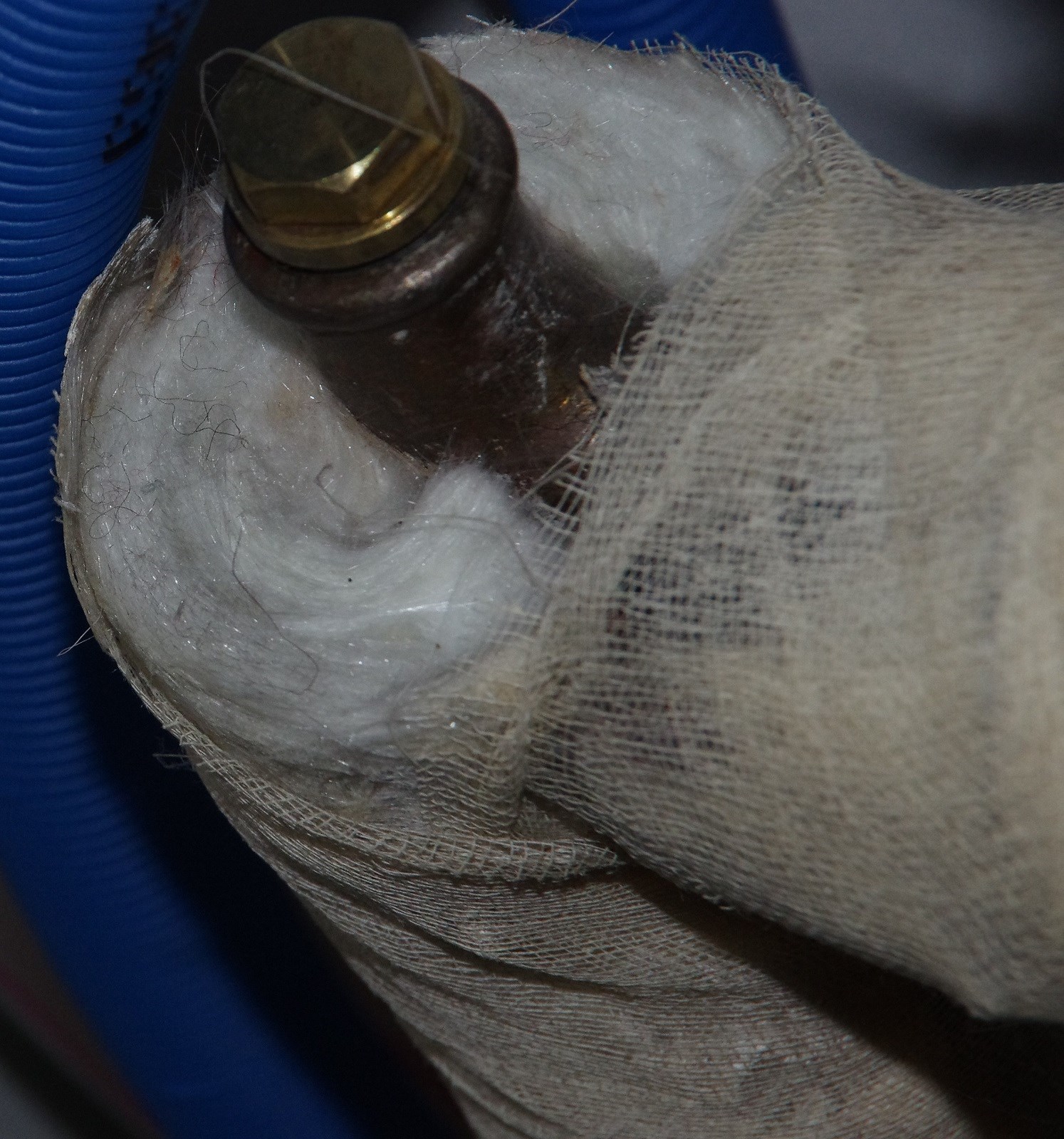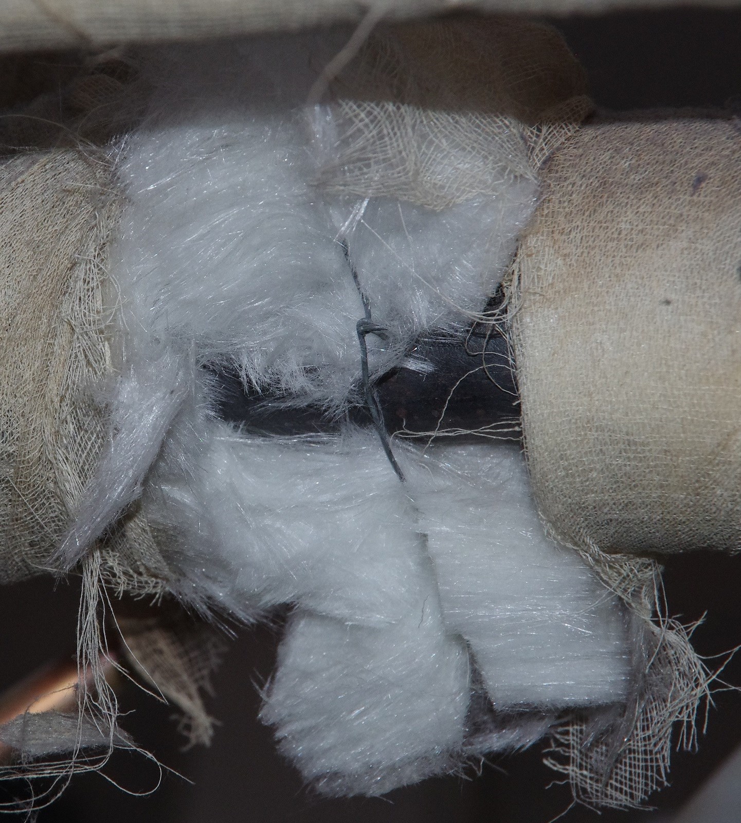 Når rør er isolert med denne metoden er det i de fleste tilfeller brukt asbest i tillegg til glassvatt og læret (Gasbind)