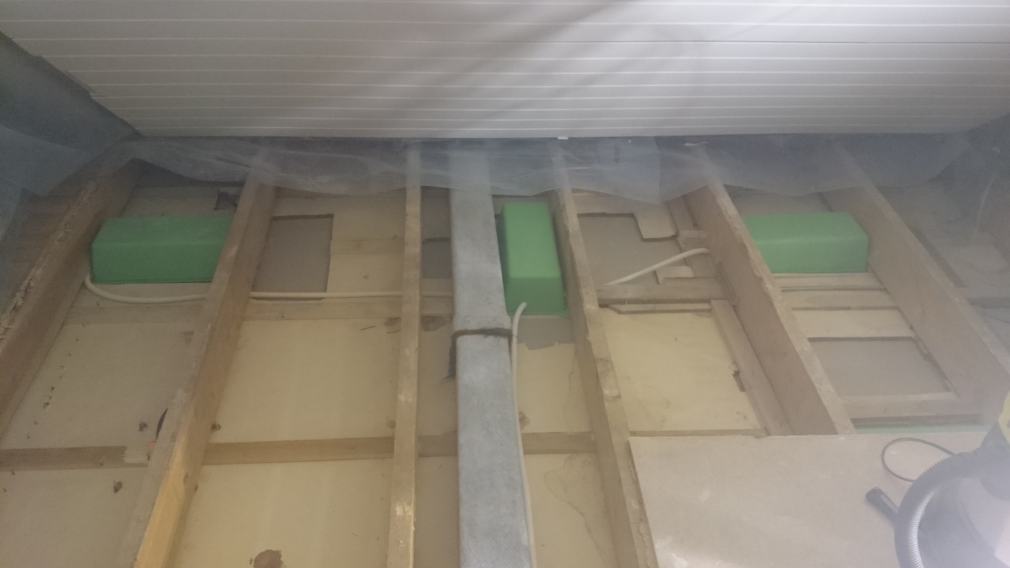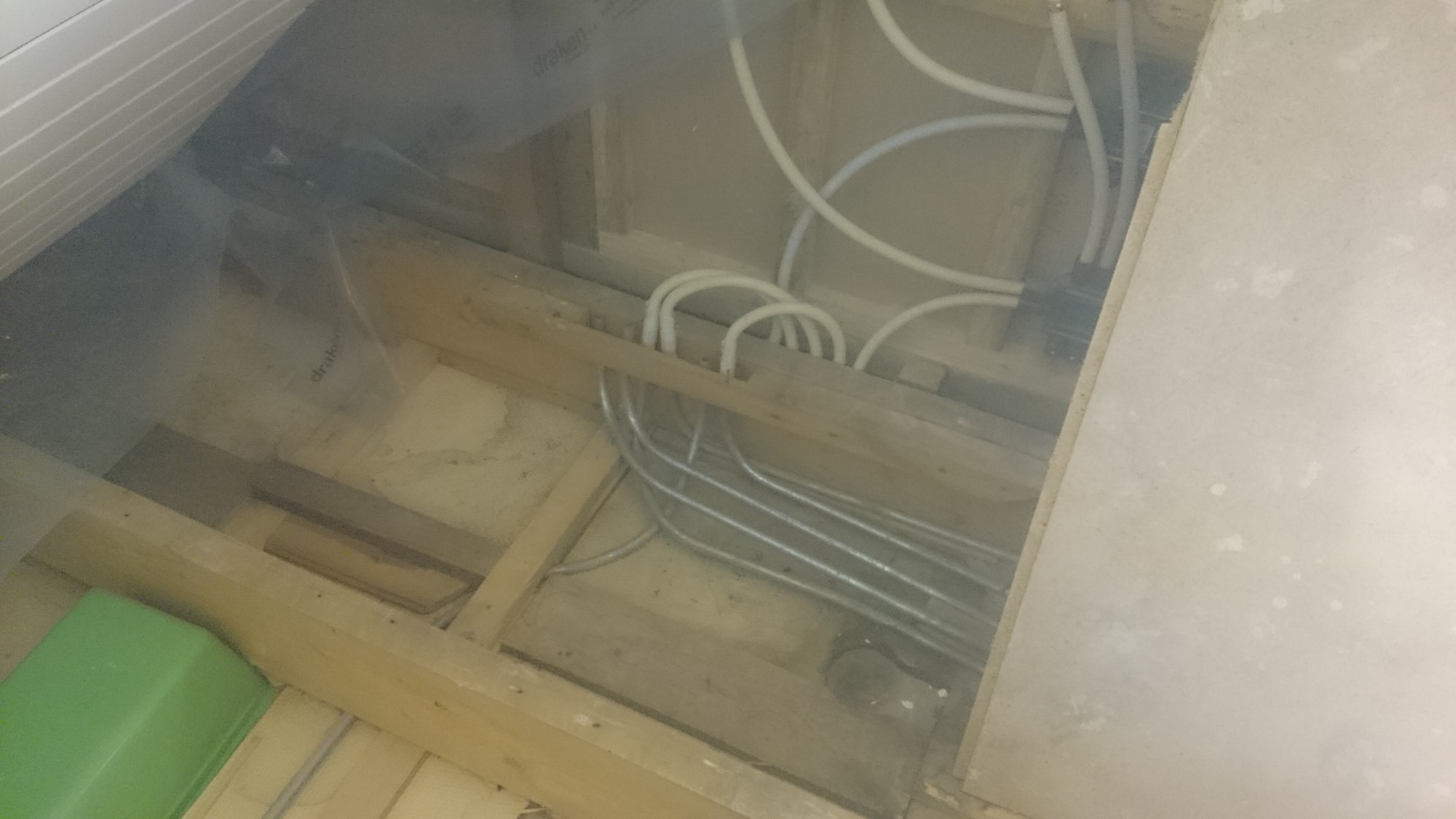 Bæringene er ok selv om jeg er over grensen ifølge bjelkelagstabell. Det er kun snakk om et kontor, ergo ingen tunge møbler/utstyr osv. Jeg vil kunne få til bjelker på ca 30cc i tre av seks fakk. Jeg må også tilpasse slik at jeg får understøtte på kortkanten på sponplatene. Der hvor det er vanskelig å få til bjelker med full høyde inntil de gamle kan jeg kløyve 48x198 til så høy som lar seg gjøre, skru denne i eksisterende og opplagre i hver ende. Alt vil vel hjelpe. Detter spesielt én bjelke som er veldig vridd. Her hadde gammel sponplate sluppet taket og det var svikt under sponplate med tilhørende knirk.