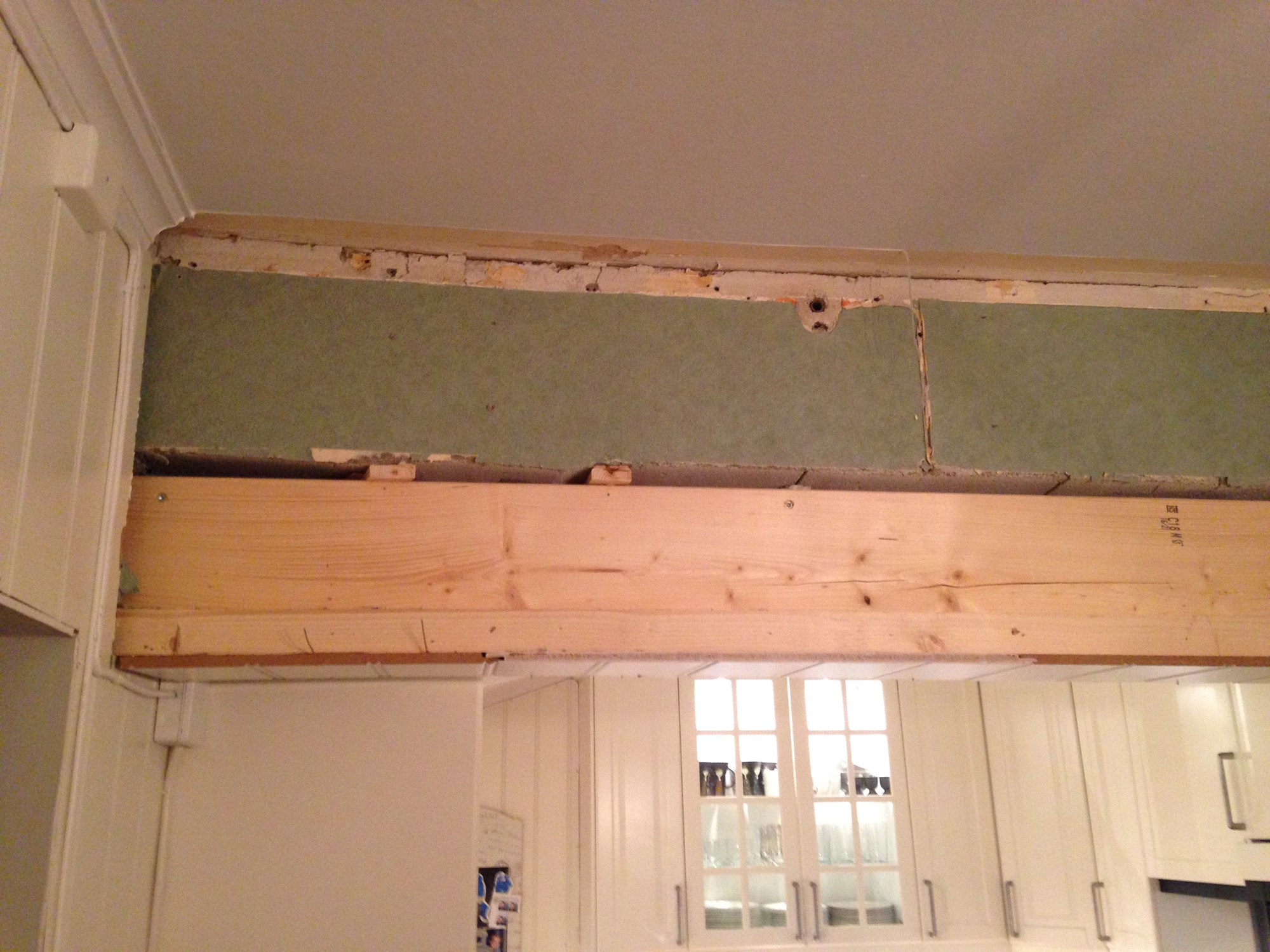 Jeg bor i en tomannsbolig i mur fra 1960. Jeg skal pusse opp spisestuen og tenker å fjerne en nedforing mellom spisestue og kjøkken. Har nå tatt ned plater og da åpenbarer det seg noe flott under der. jeg blir veldig usikker på om dette er en bærevegg eller ikke. Ser ikke ut at det arbeidet som er gjort her er gjort av fagkyndige personer. Det er på venstre side hugget inn 4-5cm i veggen som 2"x8" "hviler" på. På høyre side hviler de på en 2"x6" som ligger inntil veggen. Jeg vet med sikkerhet at dragerne i taket går parallelt med denne veggen. veggen det gjelder er ringet rundt i systemtegningen av boligen. Håper at noen kan hjelpe meg å si om dette er en bærevegg eller ikke?!