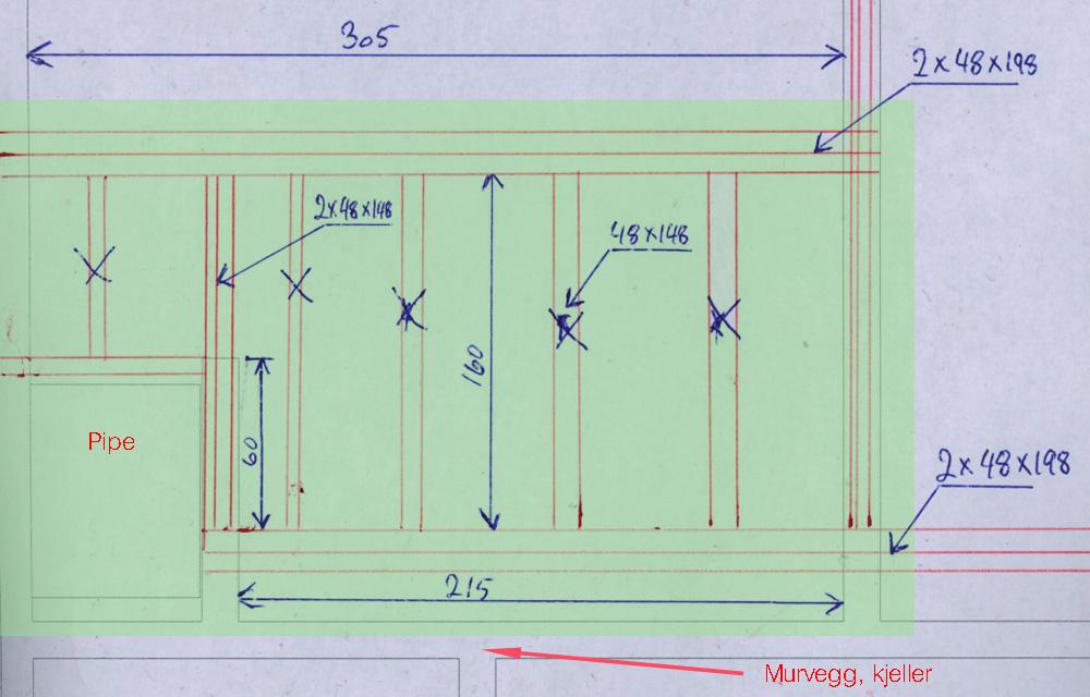 Kunne derfor tenke meg å bruke 48 X 148 i gulvet der inne, for så legge plater + støpe oppå.