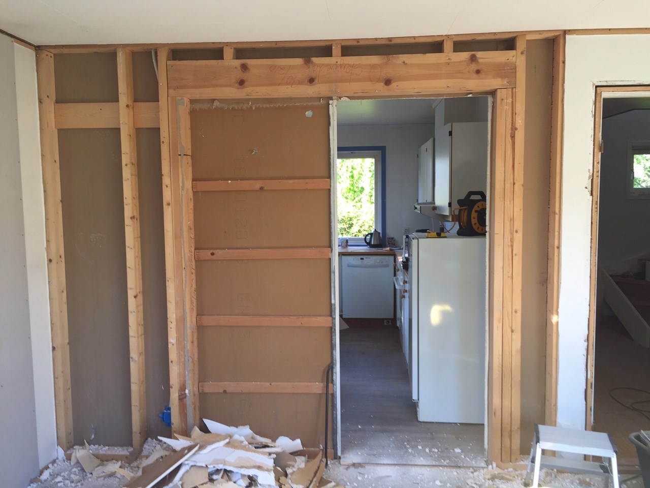Etter å ha rådført meg med hustegninger, konstruksjonen i etasjene over og under veggen, samt en bygningsingeniør og en erfaren tømmermann, ble det konkludert med at dette ikke var en bærende vegg.