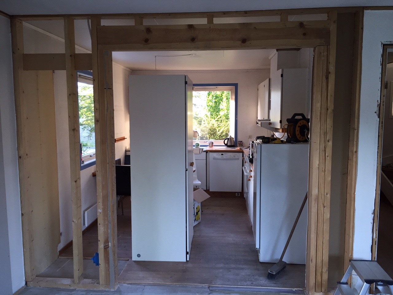 Dette ville gi oss muligheten til å forlenge det nye kommende kjøkkenet helt "til endes" på siden av døråpningen (til høyre på bildet), samt få muligheten til å åpne opp kjøkkenet mer.