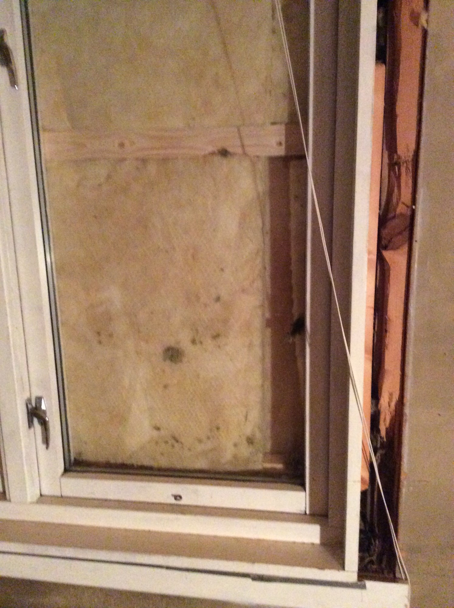 To steder er det kledd igjen vinduer, hvor vinduet fortsatt står montert. Litt artig. Det praktiske er at vi kan studere arbeidet fra innsiden. Her ser man eks en glipe på ca 5 cm mellom to plater glava.
