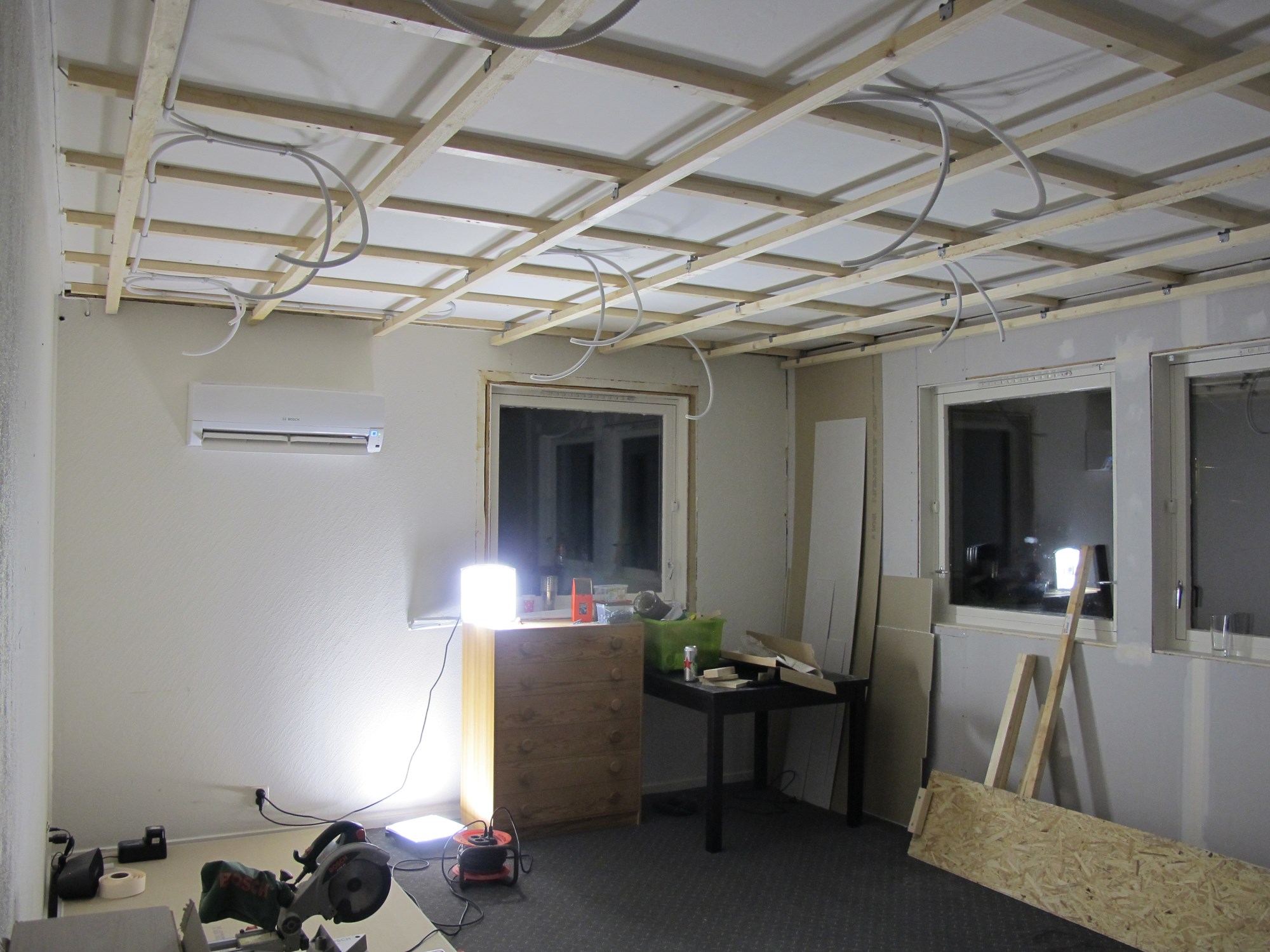 Spurte i en tidligere tråd ang. retning på bjelkelag. Fant ut av det og har nå fått lektet ned taket.