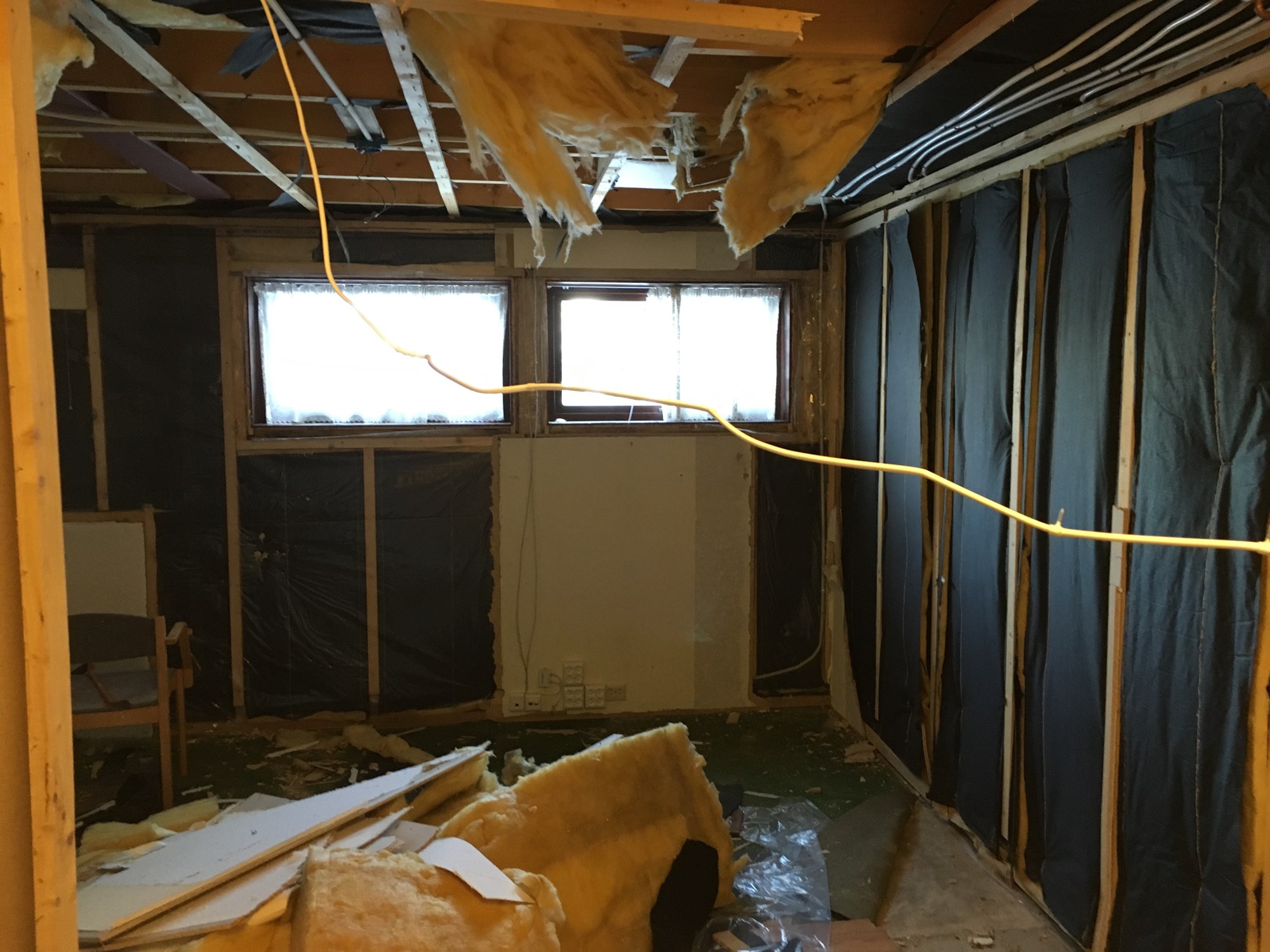 1. Rive all eksisterende himling 2. Rive alle innvendige lettvegger 3. Montere lydhimling 4. Sette opp nye lettvegger mot lydhimling