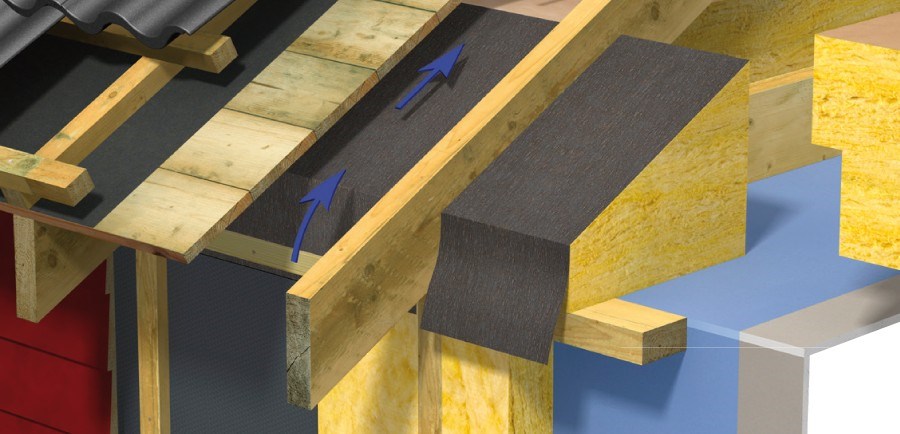 På bildet ovenfor har de benyttet diffusjonstett undertak. Det er grunnen til at luftespalte er laget.