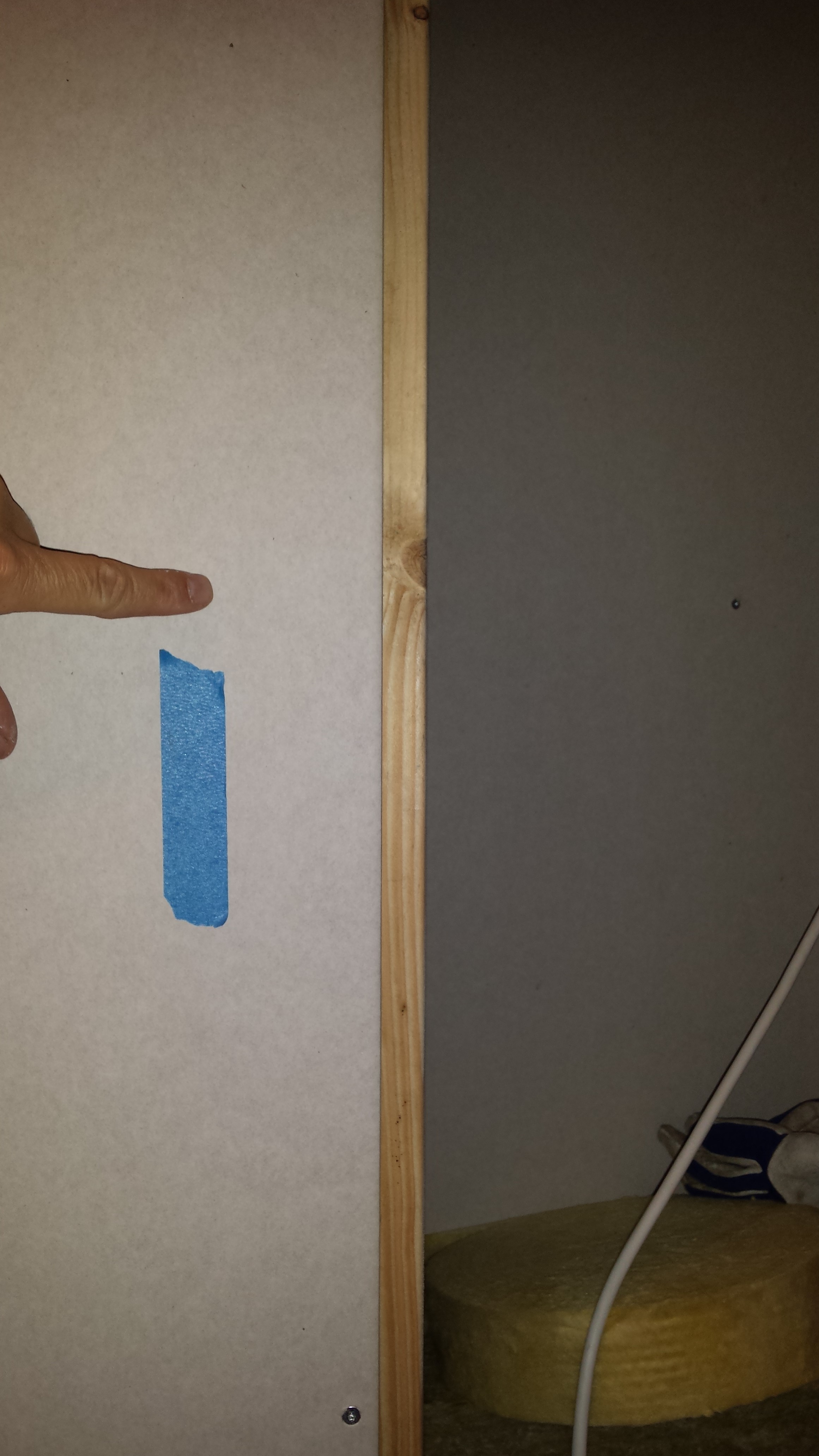 Se vedlegg (fotos) der veggen vises. Blå tape viser hvor de forsenkede områdene på gipsplatene starter.