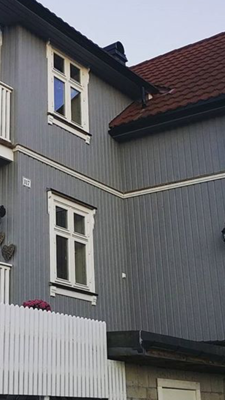 Vi skal ha et bånd rundt huset som deler litt opp etasjene slik at ikke huset virker så høyt.