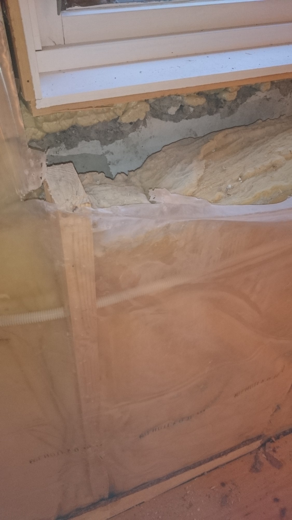 Da mener du altså en liten luftespalte mot muren, fem cm isolasjon / dertil passende lekter og så kledning? Ingen plast? Høres jo veeeldig tynt ut?