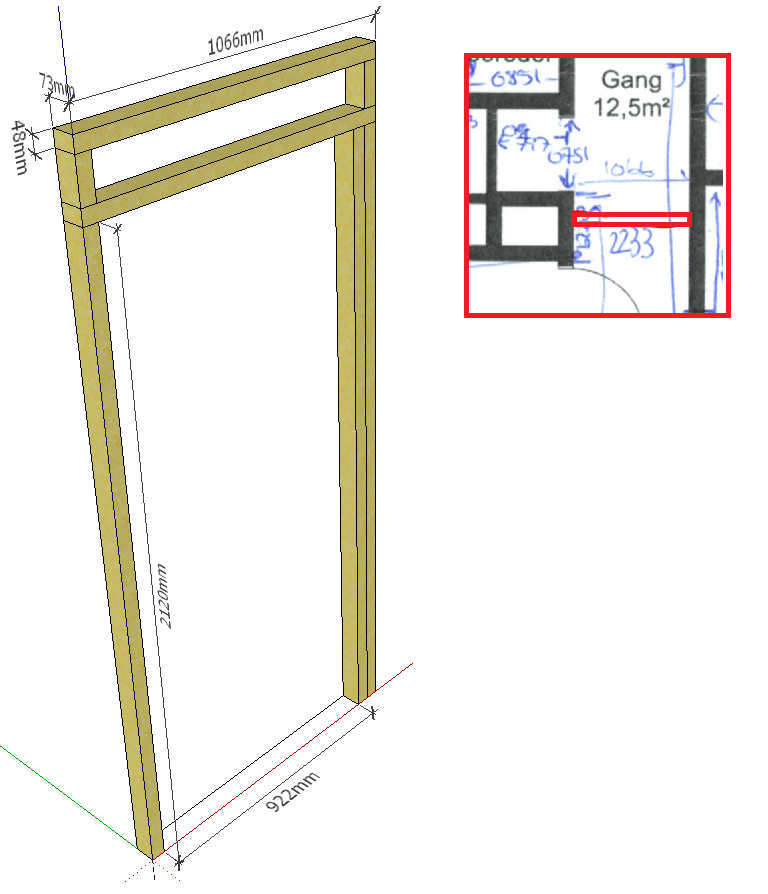 Vi har kjøpt hus og har en del planer for ting vi ønsker å gjøre med det etter hvert. Når jeg har søkt rundt på diverse emner så har jeg ofte funnet svar på det jeg lurer på her på dette forumet. Dette blir mitt første innlegg her, men helt sikkert ikke det siste. Vi har snart overtakelse, og det første vi skal gjøre er å legge til rette for å leie ut en liten del av boligen. Jeg skal for det meste bruke dobbelt trestenderverk og dobbel eller trippel gipsplatekledning for å skape god lydisolering mellom hybelen og vår egen del. Det svakeste punktet lydisoleringsmessig blir ved en ny dør i en innvendig gang. Jeg har planer om å kjøpe en 9x21 B30/35dB klimadør. Spørsmålet mitt er knyttet til denne. Gangen er ca. 1066 mm bred, og det gir akkurat plass til en 48x73 mm stender på den ene siden av døren, og to stendere på den andre siden (se vedlegg). Det blir med andre ord ikke plass til mye isolasjon her. Det jeg lurer på er om noen har tips til hvordan jeg kan gjøre denne konstruksjonen best mulig lydtett? Jeg tror det er støpt murvegg på begge veggene/sidene av gangen.