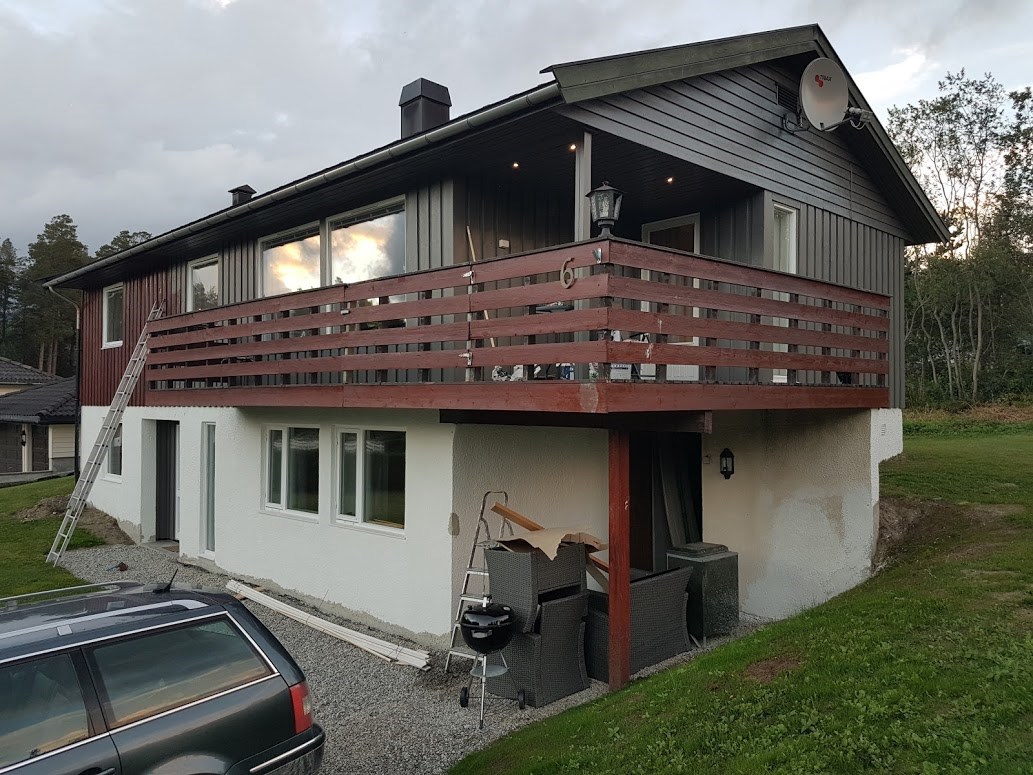 Legger ved bilder av hvordan det er i dag. Ønsker nok å bygge på hele siden av huset og utover på framsiden. Kanskje 3 meter utover fra siden det ikke er veranda idag, og 2-3 meter utover på framsiden? Kan komme med eksiterende mål senere i dag om noen vil kanskje hjelpe å tegne opp hvor det anbefales å sette støpesylindere, dragere osv. Bør man fjerne alt som er der idag, eller kan jeg bygge på/skjøte på det eksisterende?
