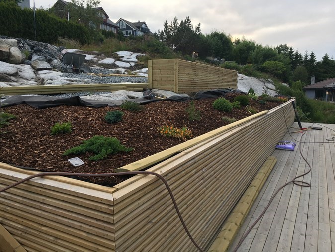I fjor sommer hadde jeg et firma innom som satt opp rammeverk for en platting & en terrasse, ser nå i ettertid at det kanskje var litt enkelt satt opp på noen av tingene. Tror derfor jeg må under platting å gjøre noen tiltak her selv.