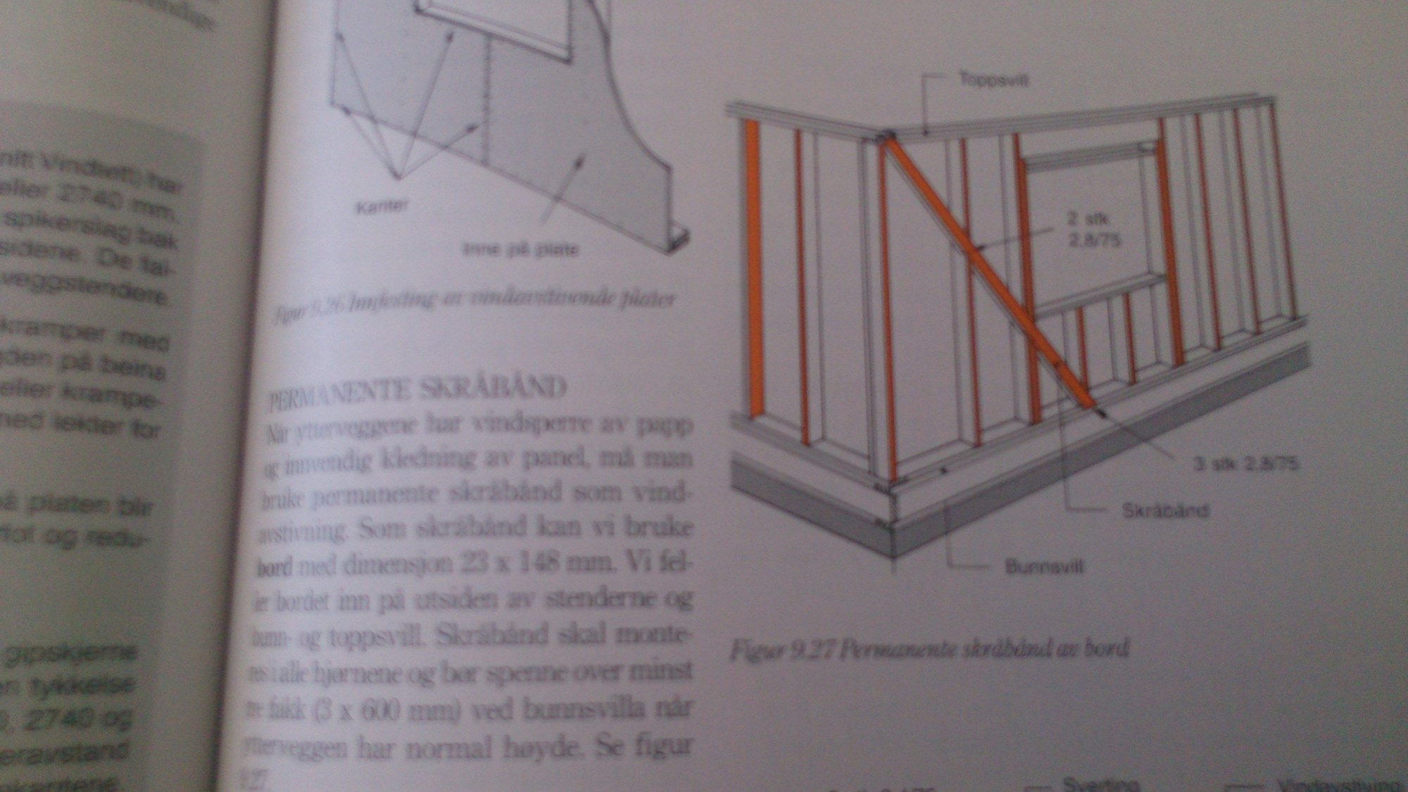 Bilde jeg sendte viser hvordan du bør feste skråavstiver i hvert ende av veggen
