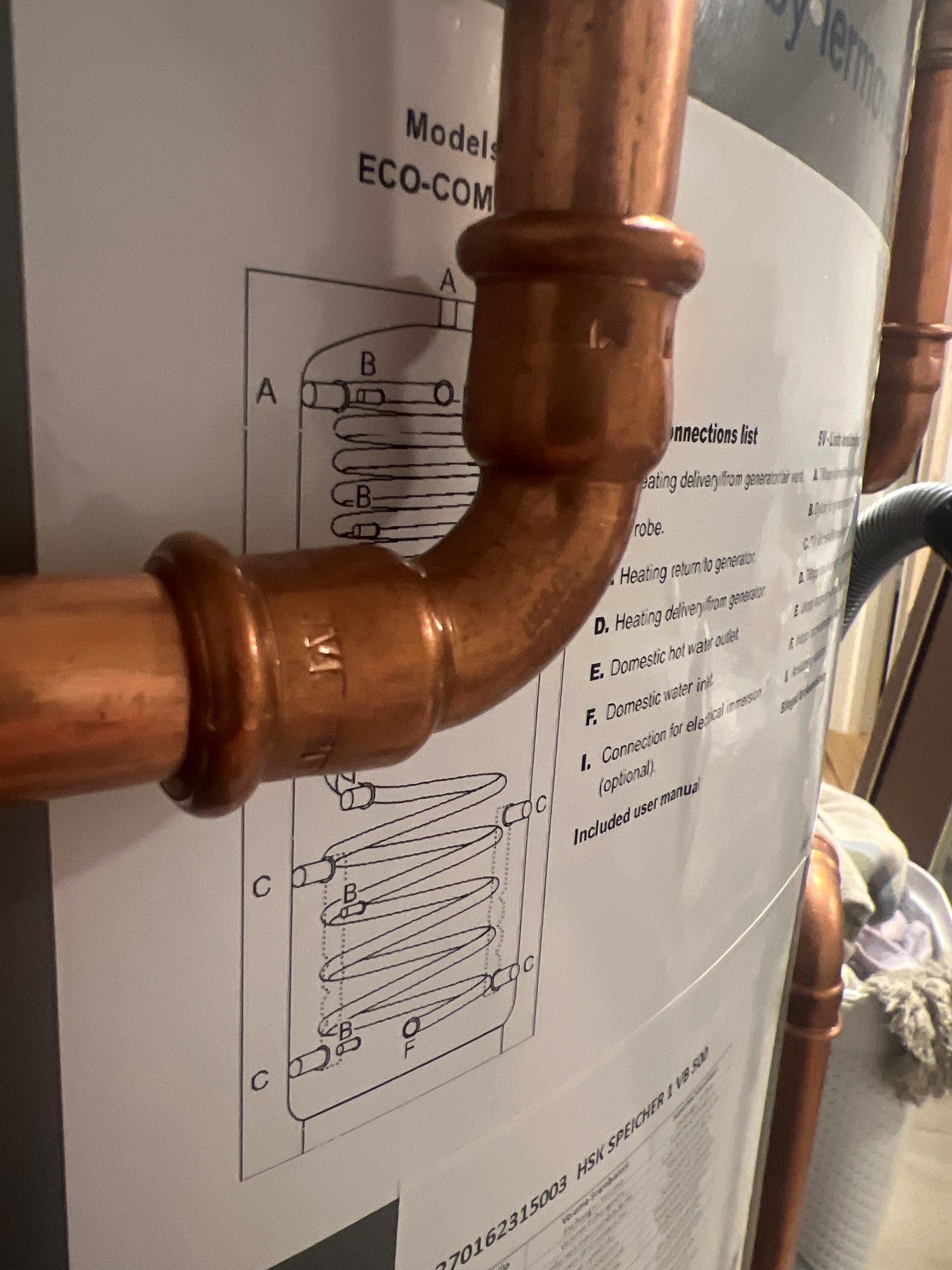 Akkumulator tanken er frittstående. Leverer varmt tappevann til kraner og dusj. Men ser at tappevannet kommer inn nede til et spiralrør og kommer til slutt ut oppe på tanken etter å ha blitt varmet opp av tankvannet. Så tappevannet er faktisk ikke så lenge i tanken så regner med det går bra.