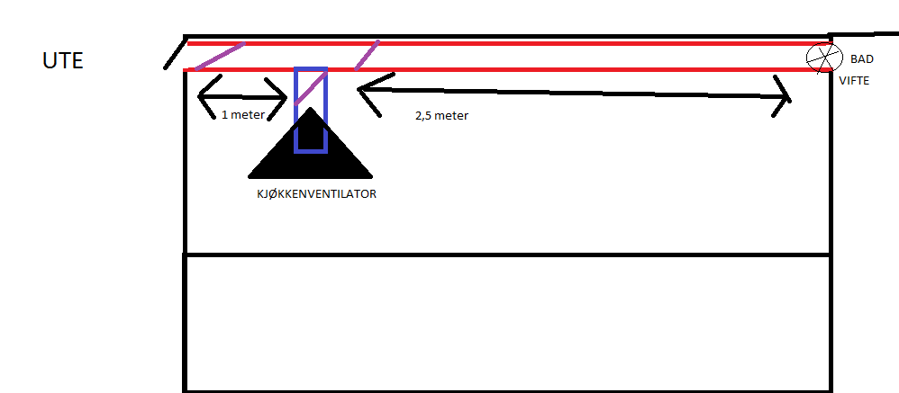 Alternativet er å lage et nytt hull i veggen rett under kanalen til badet, og så la kanal gå ut der. Men det blir jo straks litt mer jobb.