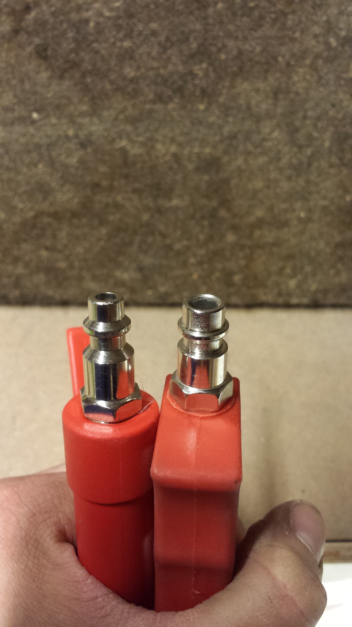 Personlig er alt jeg har av trykkluftutstyr av typenn til venstre (310), mens alt jeg har på jobb er av typen til høyre (320). Har fundert på å lage meg et par overganger fra 310 han - 320 hun, samt 320 han - 310 hun. Dette for å slippe å bytte ut alt av nipler på en gang, da jeg ønsker på sikt å gå over til 320.