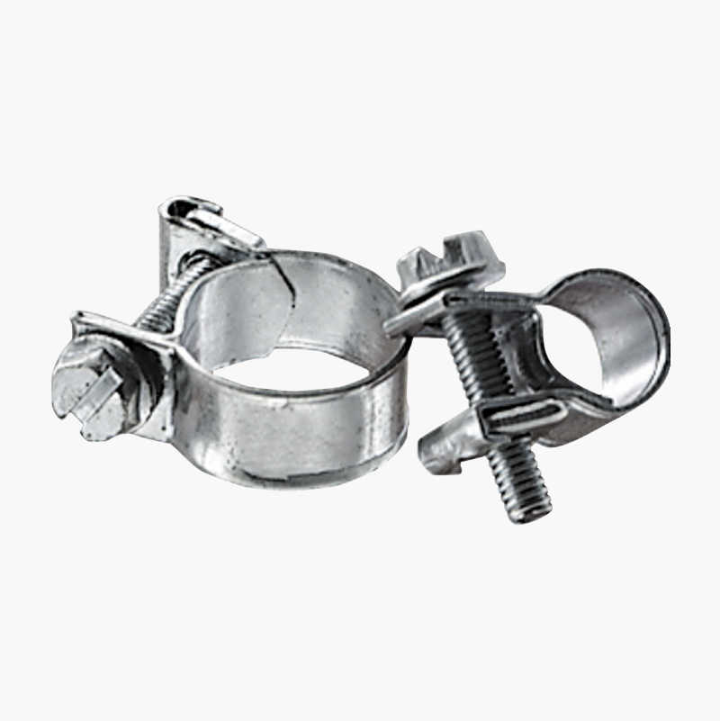 Jeg ser for meg en slik slangeklemme, men bytte ut bolten med en slik du linket til, bare mindre og samme dimensjon som slangeklemmebolten