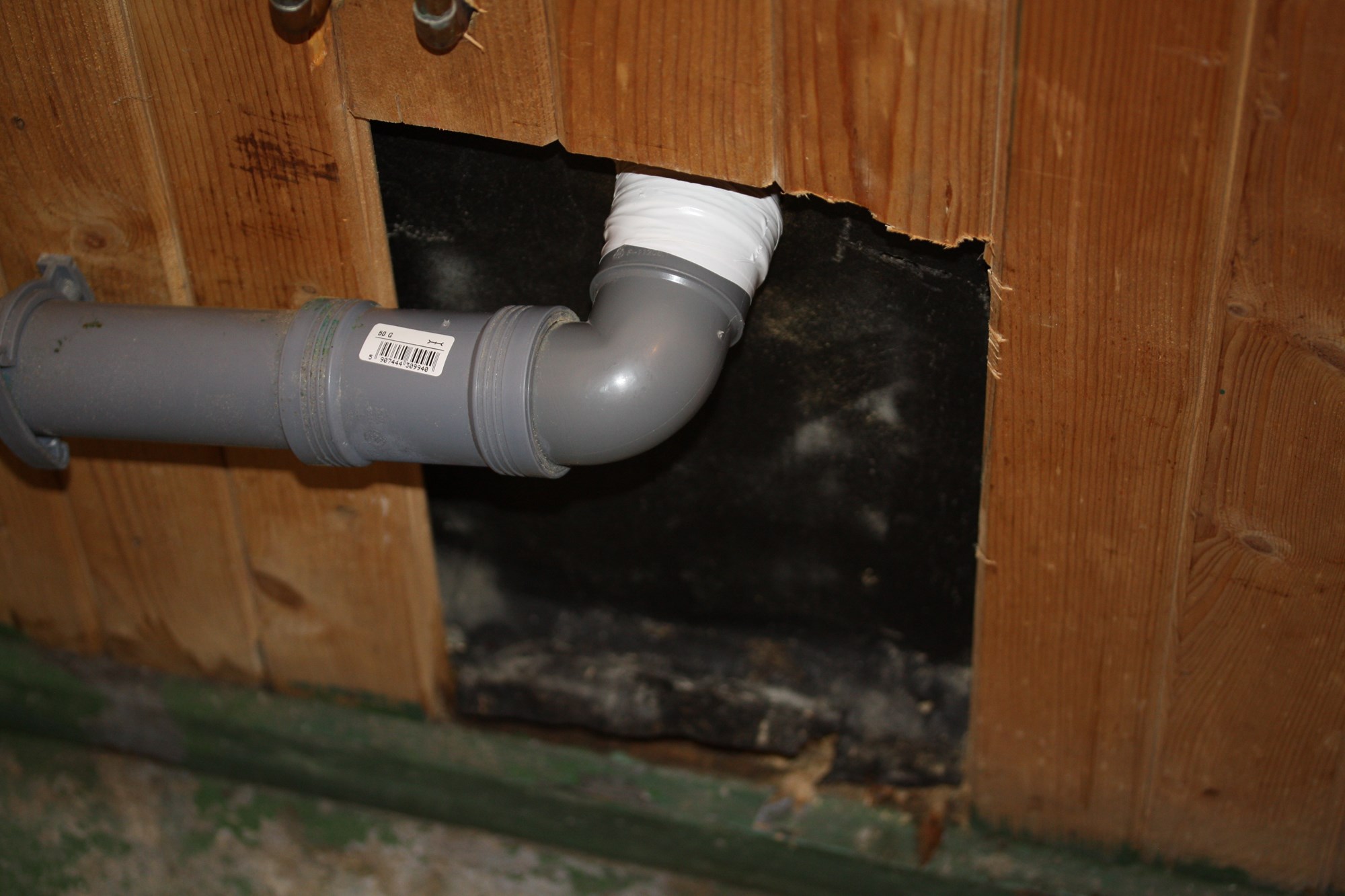 Jeg setter stor pris på ditt råd, men tror liksom ikke forsikringsselskapet vil bry seg nevneverdig om dette. Jeg legger ved et bilde av skaden som nå er fikset, inntil vi får satt inn et rør uten skjøter.