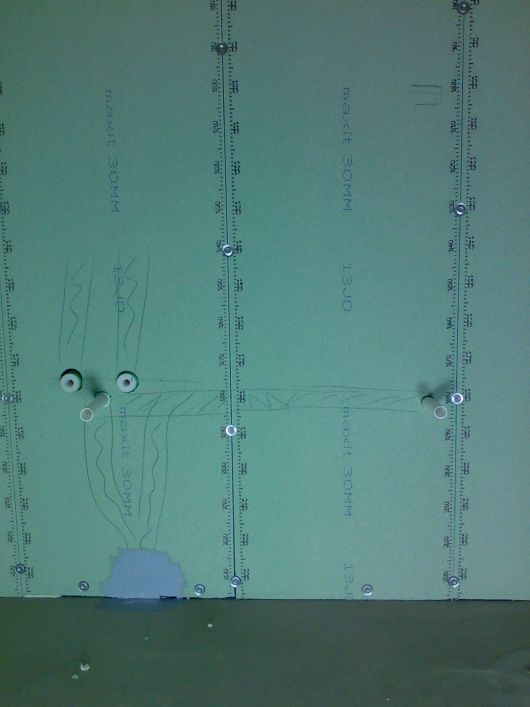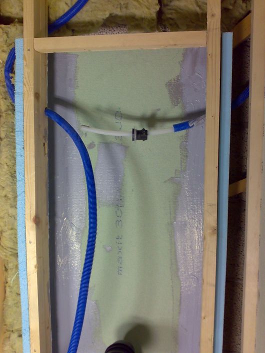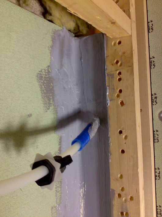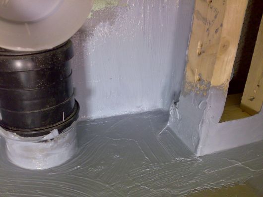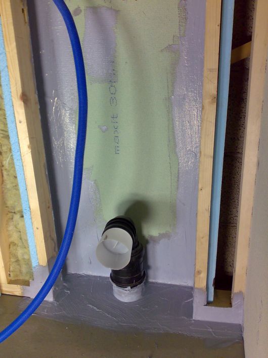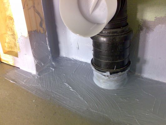 200mm S80 isolasjon deretter 0,20 plast oppå der igjen 50mm Bewi EPS leggeplate for vannbåren varme. Varmerør lagt i spor. Armeringsmatter oppå der igjen og så tilslutt støpt gulvet med betong. Avrettingsmasse på toppen for fall til sluk etc. Banemembran legges oppå før det blir flislagt.