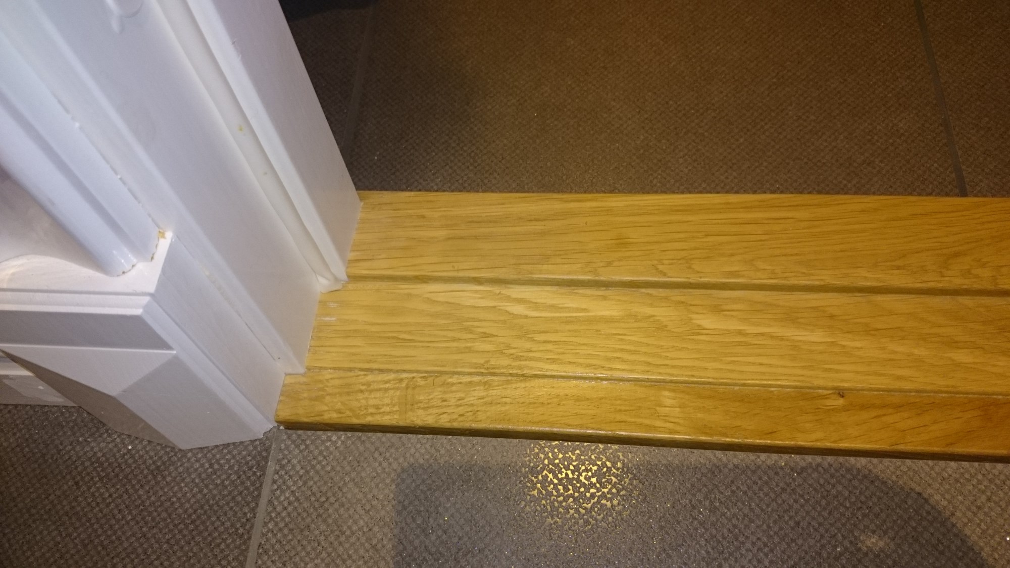 jeg ville i dette tilfelle, som nevnt før, prøvd og brukt fugemasse frem til dørterskelen.