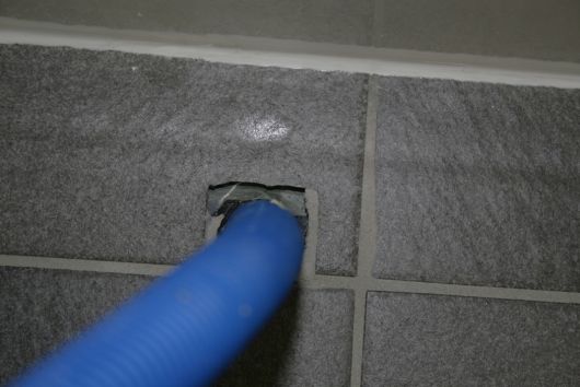 Det som jeg syntes var litt rart derimot, var at det ikke er tettet rundt disse tomme områdene. Det er ikke lagt fugemasse mellom flisene og rørene, dermed blir det 1cm tomrom ned til gulvbelegget under. Slik jeg ser det er dette yngling for vann som kan samle seg. Jeg har lagt ved bilder, for å forklare litt bedre.