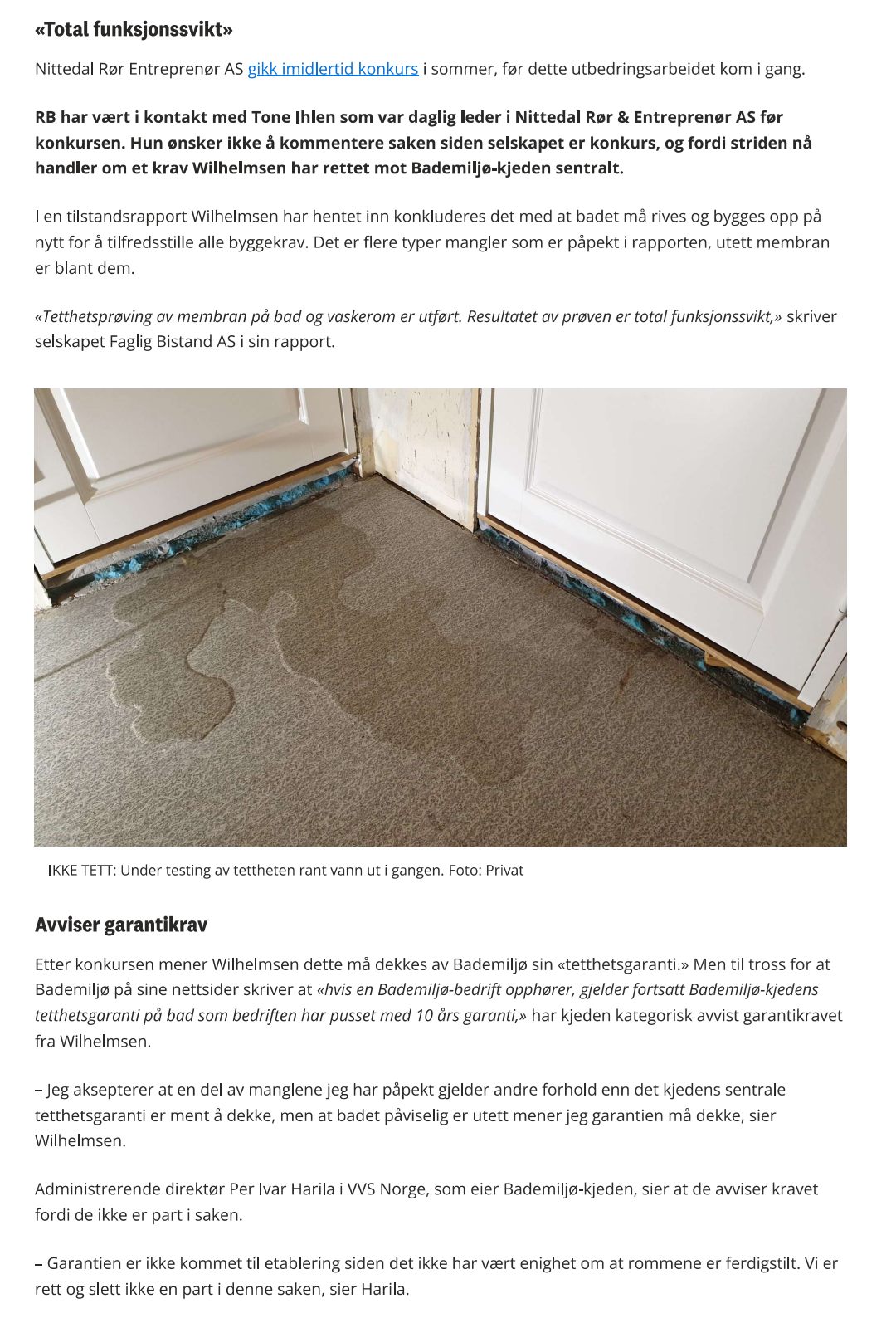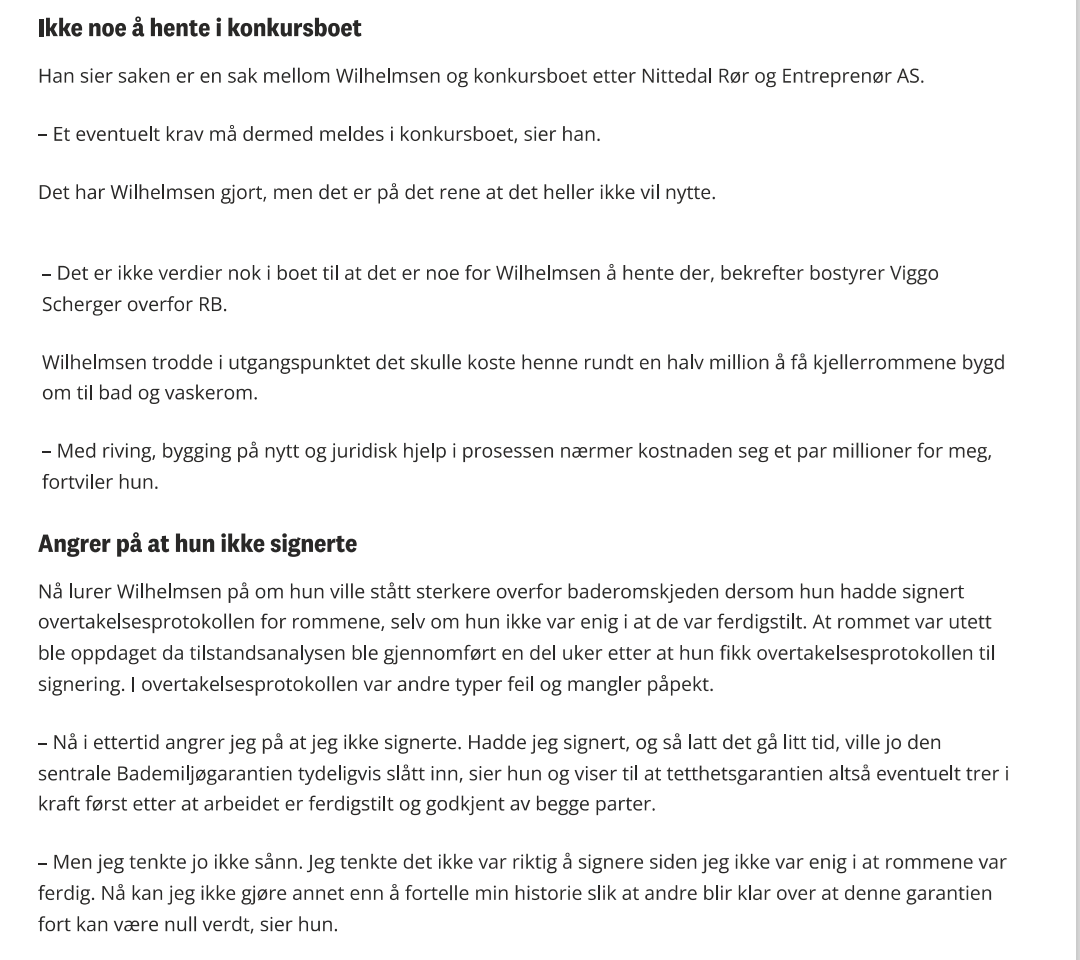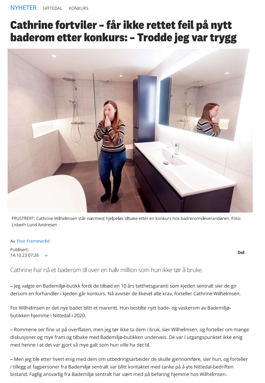 Les saken på Romerikes Blad: Cathrine fortviler – får ikke rettet feil på nytt baderom etter konkurs: – Trodde jeg var trygg