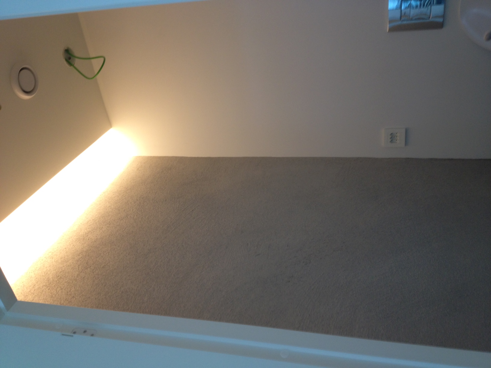 Har i det siste fått opp litt mer belysning, fått skittentøyssjakt-luke på plass, gummigulv i gang ferdig, laget "mini-avløp" for tørketrommel ned i sluk (som er under innredning) og dermed unngår tørr sluk.