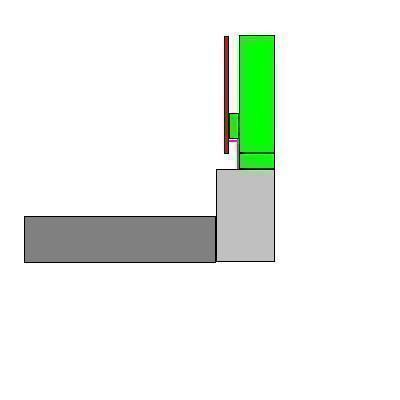 Veggen er bindingsverk, gulvet er betong med ringmuren stikkende 10cm høyere opp enn gulvet. Veggen er 5 cm lenger inn på ringmuren igjen. Har laget tett skikt fra ringmur og ti cm opp, lektet ut og har platene 22mm ut fra bindingsverk slik at nederste del av platene hengerfritt.