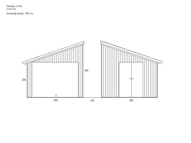 Tenker å sette opp 2x15 m2 bod/garasje som det ikke trengs å søke om (hvis man holder seg innenfor reglene).