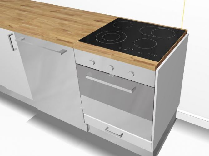 Det går fint helt til du setter inn stekeovnen, da stanger plutselig ledningen ut fra platetoppen i stekeovnen, og du må flytte platetoppen 20 mm lenger bak og ender opp med ei 20 mm glippe mellom platetopp og framkant av plata.