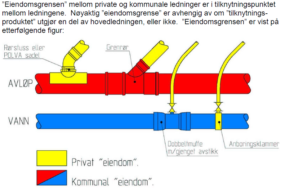 Har lagt ved et bilde som definerer "eiendomsgrensene" mellom private og offentlige ledninger.