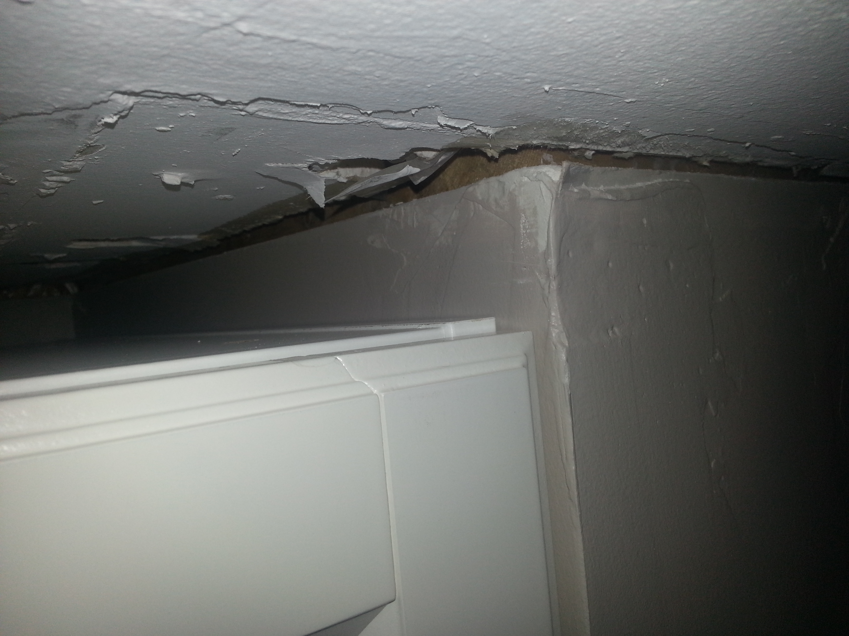 Mellomrommet over skapet er ca 5 cm. Det burde vel være en taklist der og ikke bare en utforing i veggfarge?