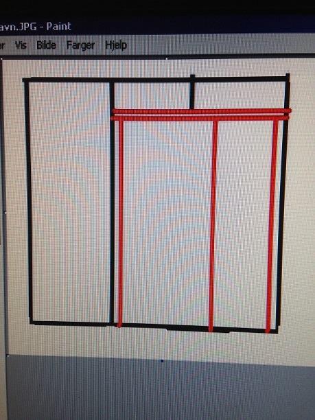 Opprinnelig plan var å sette inn skyvedør (døråpning + kasse 170 cm bred), men dette blir kanskje trøblete på bærende yttervegg?