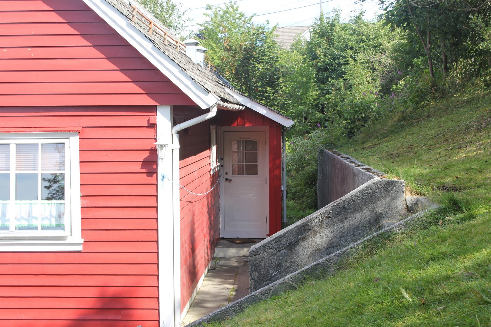 Ønsker å bygge ut huset mot en støttemur som er plassert ca 215cm fra huset. Støttemuren er i betong og sikkert fra huset var nytt, ca 1960. Muren er ca 22cm tykk, ca 2 meter høg fra bunn hellelegt inngangsparti. Hellene er ca 43cm under golvnivå. Regner med at muren har består av blanding av betong, grus og stein. Det ser ikke ut for å være noe lekkasjer gjennom muren.
