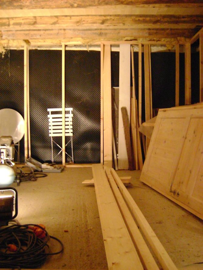 Tak: Har isolert 5 cm og lagt panel mellom bjelker.