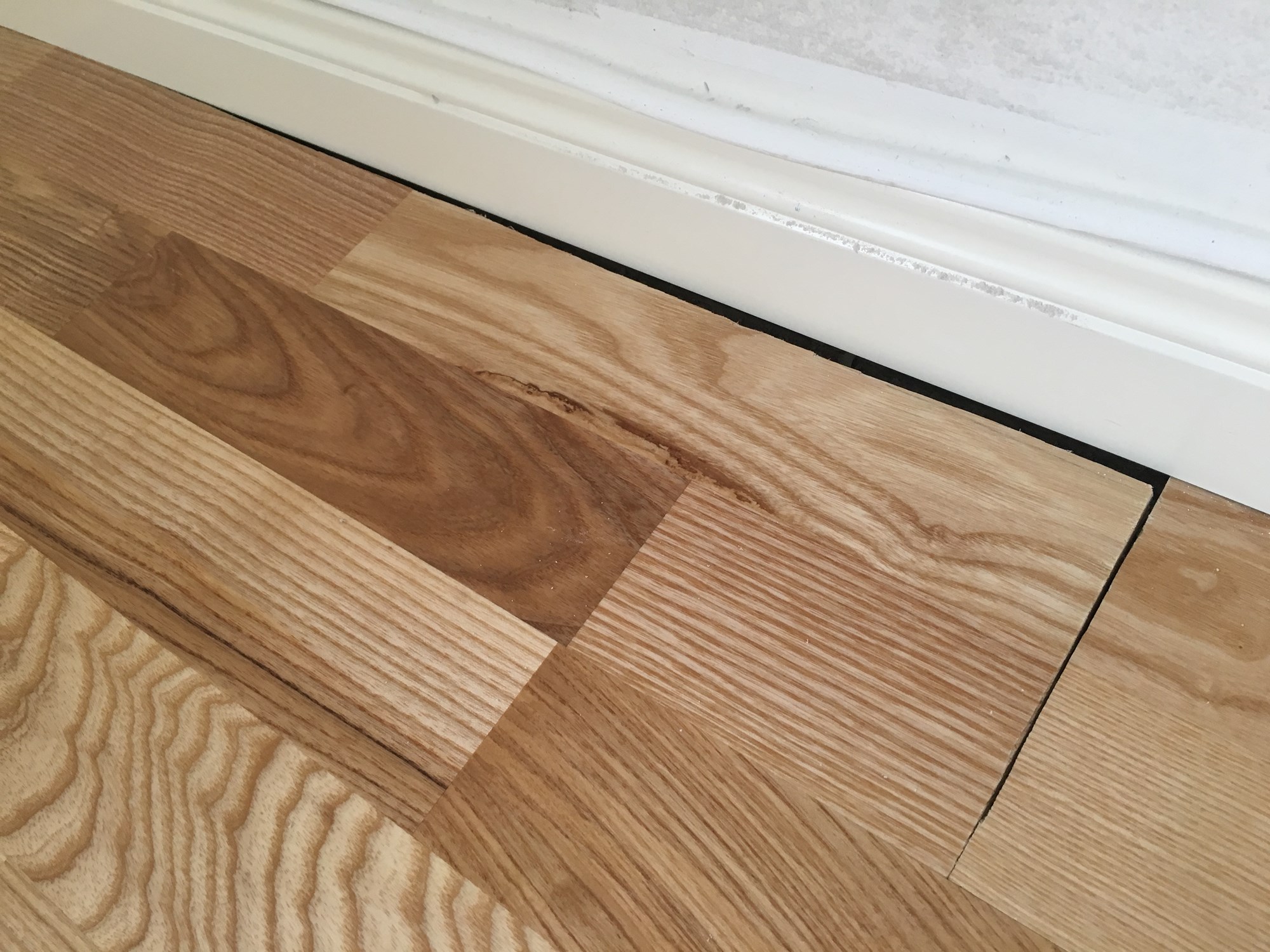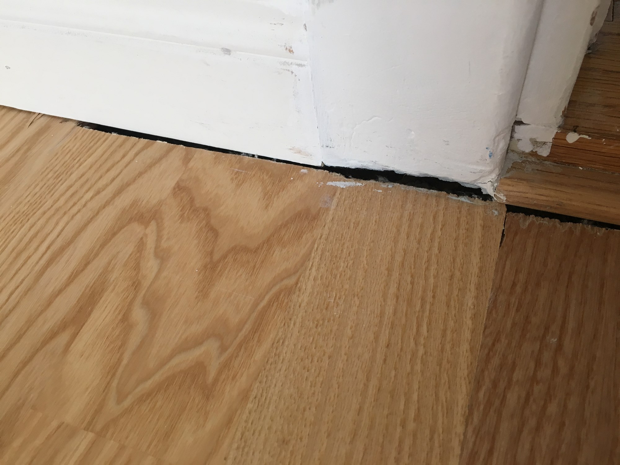 Kjøpte bruktbolig i fjor, og først i år blir de første grepene tatt. Var klar over at det var noe småplukk her og der. Det som kanskje er mer utfordrende, er gulvet som ble lagt av en tidligere huseier på barne/gjesterommet. Akkurat dette har jeg ikke vært borte i før. I utgangspunktet et pent gulv, men jobben er ikke skikkelig gjort. I to av hjørnene og langs dørkarmen, er det noen glipper.