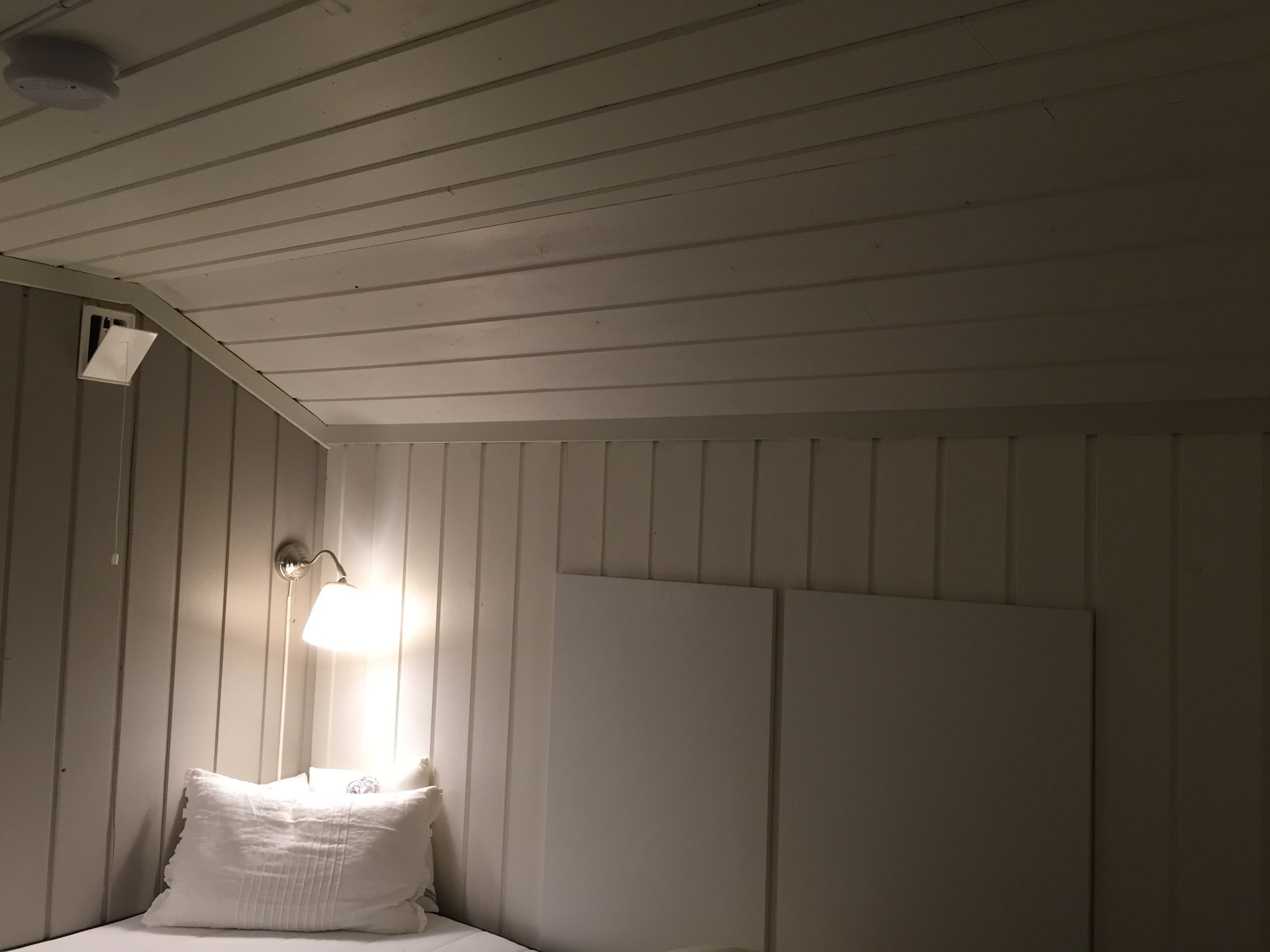 1. Vi ønsker først å fremst et takvindu dersom det faktisk er fysisk mulig med dagens byggløsning (?). Dette for å kunne lufte ut og sørge for godt inneklima på rommet ved gjestebesøk, samt å få inn naturlig dagslys. Det er vel egentlig krav til sistnevnte dersom rommet skal brukes som soverom iflg. TEK17? Er kravet om antall rømningsveier (2) fjernet, slik at det hovedsakelig er krav om dagslys? Det skråstilte taket er som nevnt ikke mer enn 65cm fra vegg til tak, så vinduet, dersom det er mulig å installere, blir ikke stort. Hvilke løsninger kan være aktuelle her?