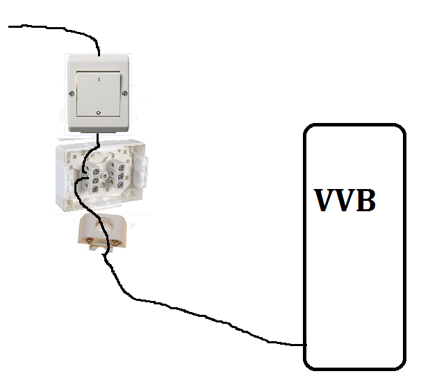 På øverste bildet kan en kun bruke bryteren og strekkavlastning i boksen, rør som går fra boks til bereders tilkoblingspkt