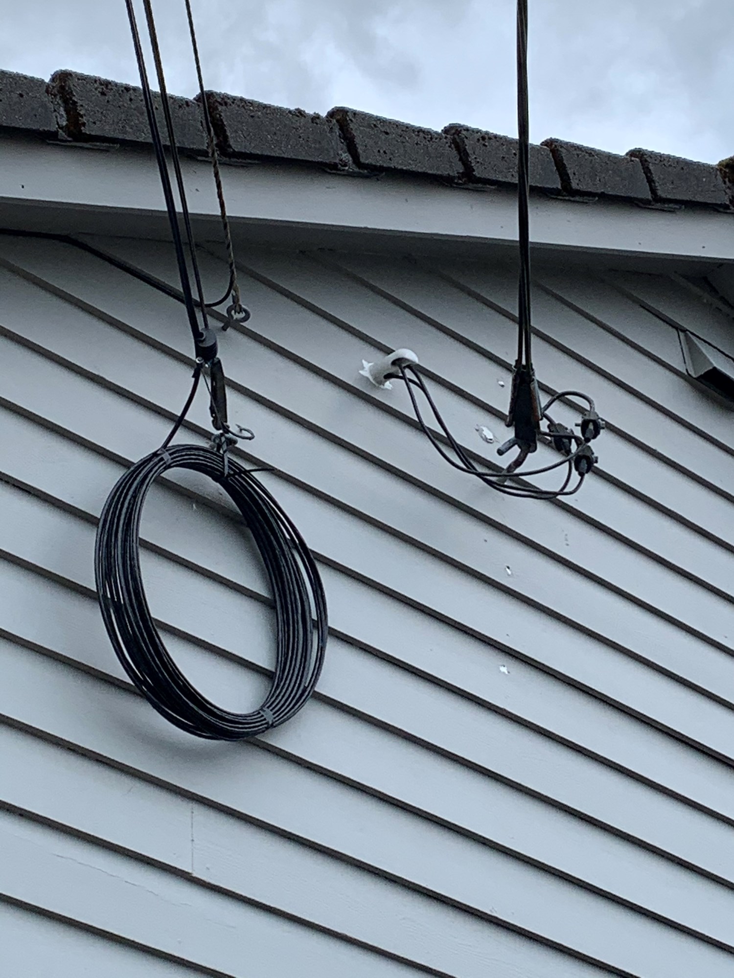 Gjør vi det? Jeg ser tre kabler, hvorav to går videre inn i huset, og kveilen ikke gjør det. Det som kan se ut som enden på kabelen som ender under et bord er nok bare en strips. (tenk over hvilken vei kabelen er kveilet, mot klokka, og den løse enden skulle gå ut av kveilen.)