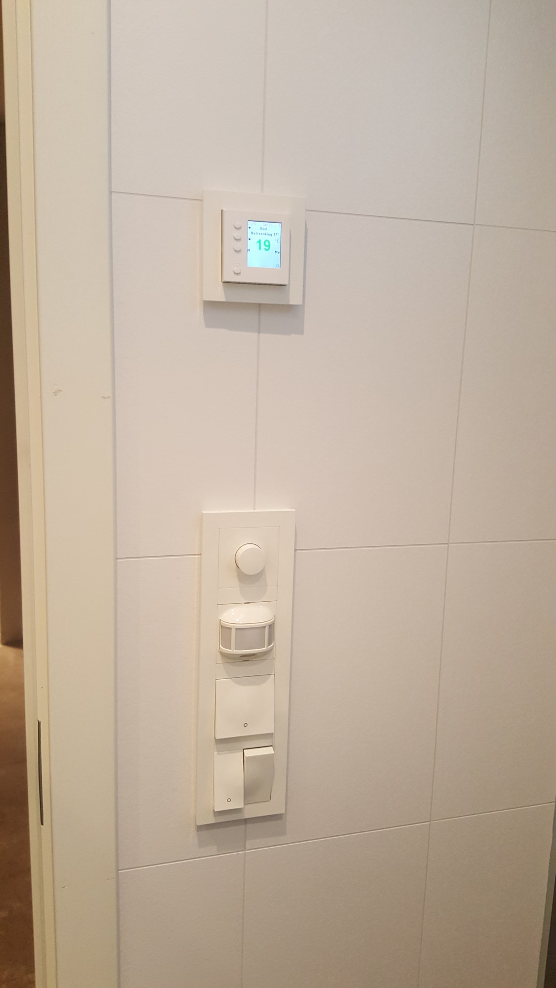 evt så må man til med noe slags bus/smarthus-styring. kanskje litt avansert kun for et vaskerom/bad, hvertfall når man ikke har det i resten av huset.