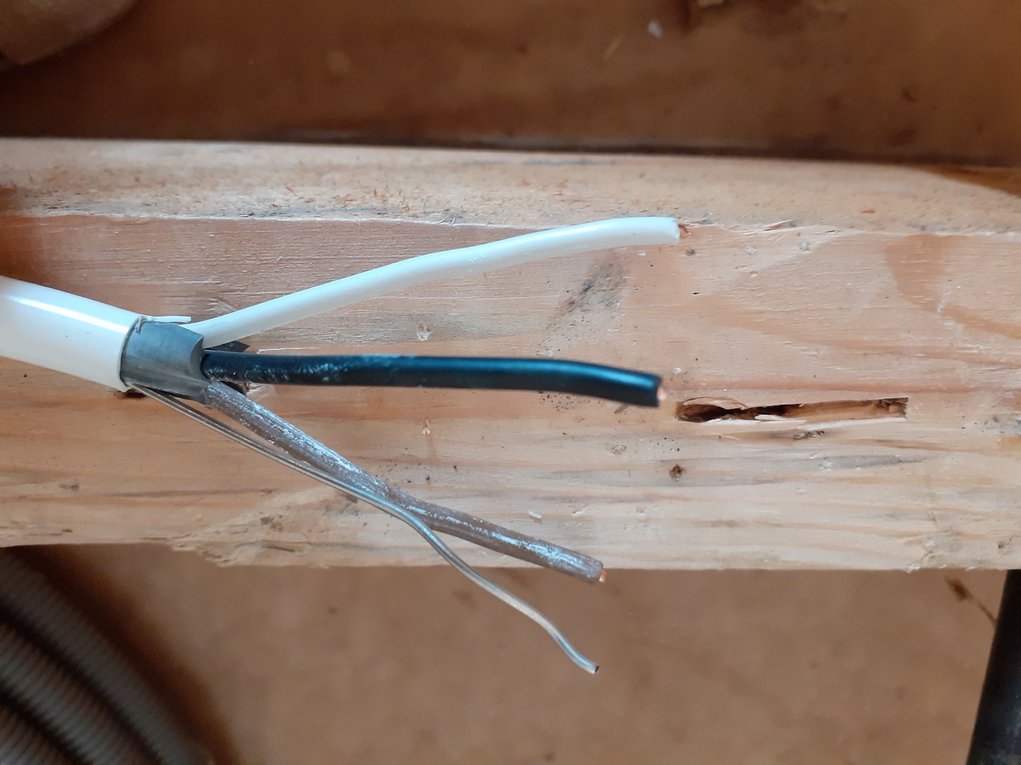 Driver og pusser opp kjøkkenet og ledningen fra skapet og ned til vvb gikk på utsiden og delvis inni veggen. Så jeg måtte fjerne den. Men lederne i denne ledningen er ikke vanlig for meg.