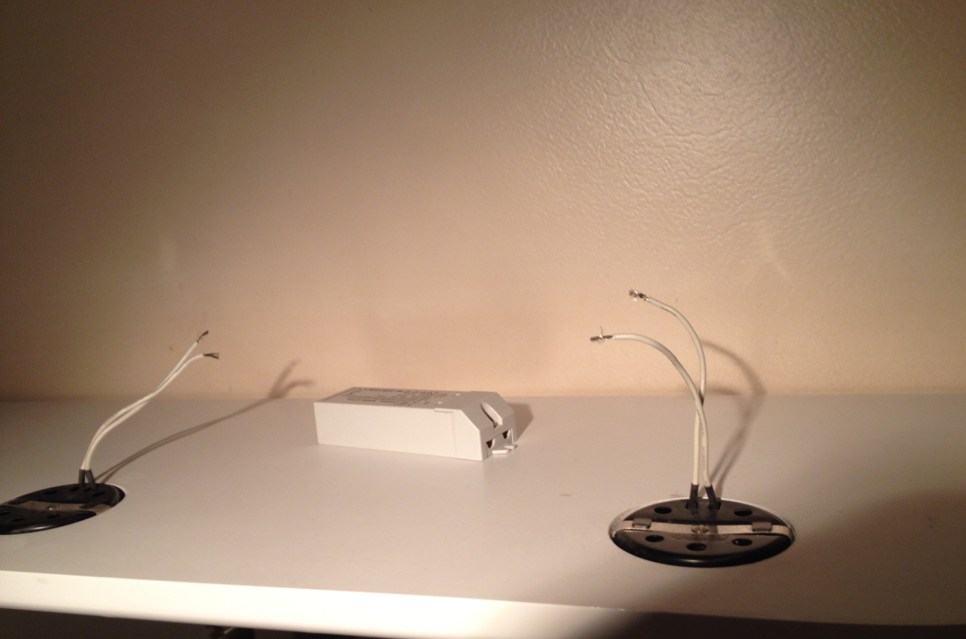 Hvordan gjøres installasjonen av strøm til spotlight trafoen og stikk i baderoms innredning?