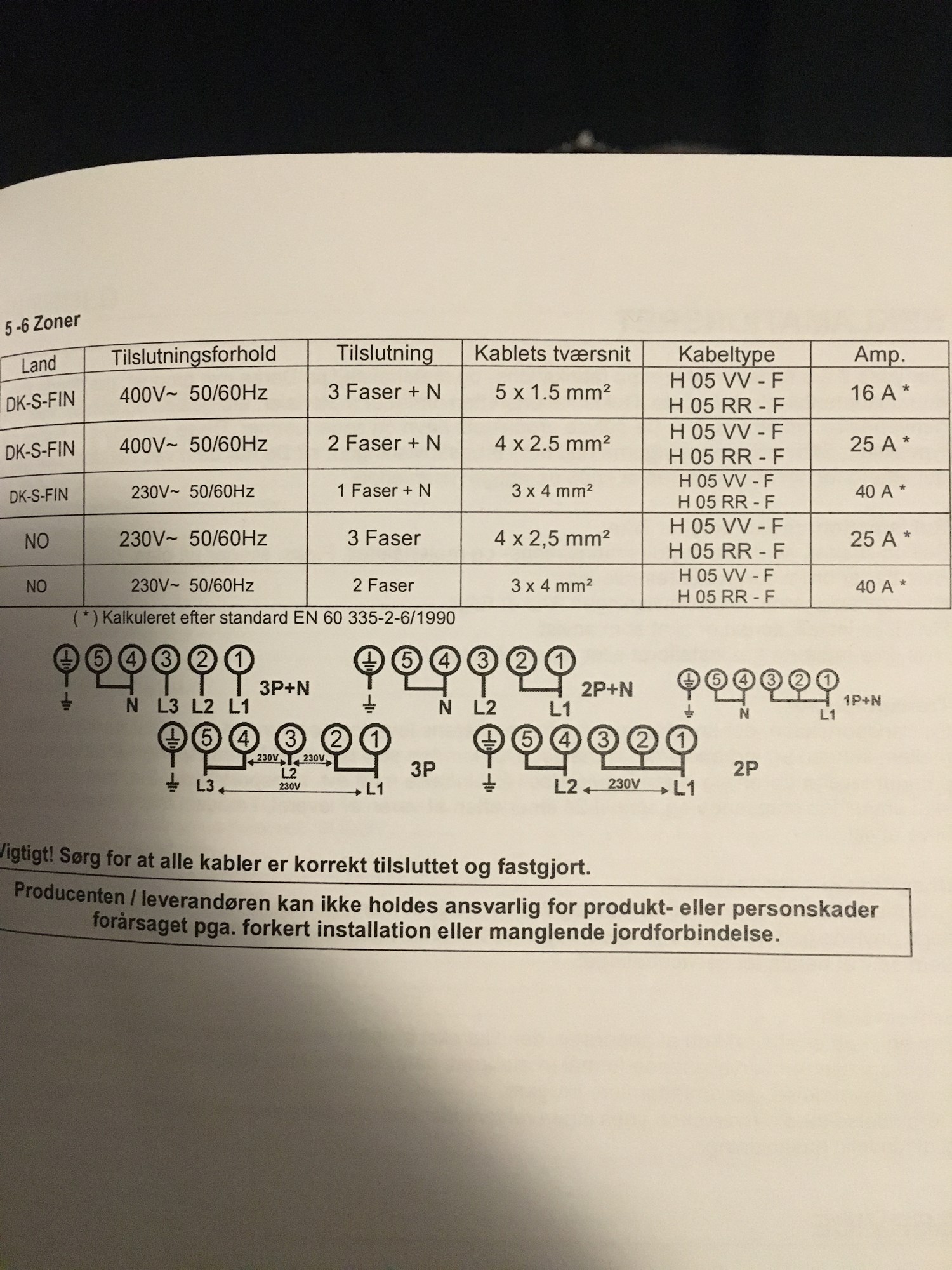 Har fått en slik platetopp med 3 fas ledninger og så har jeg bare to fas stikkontakt med to ledere og en jord.