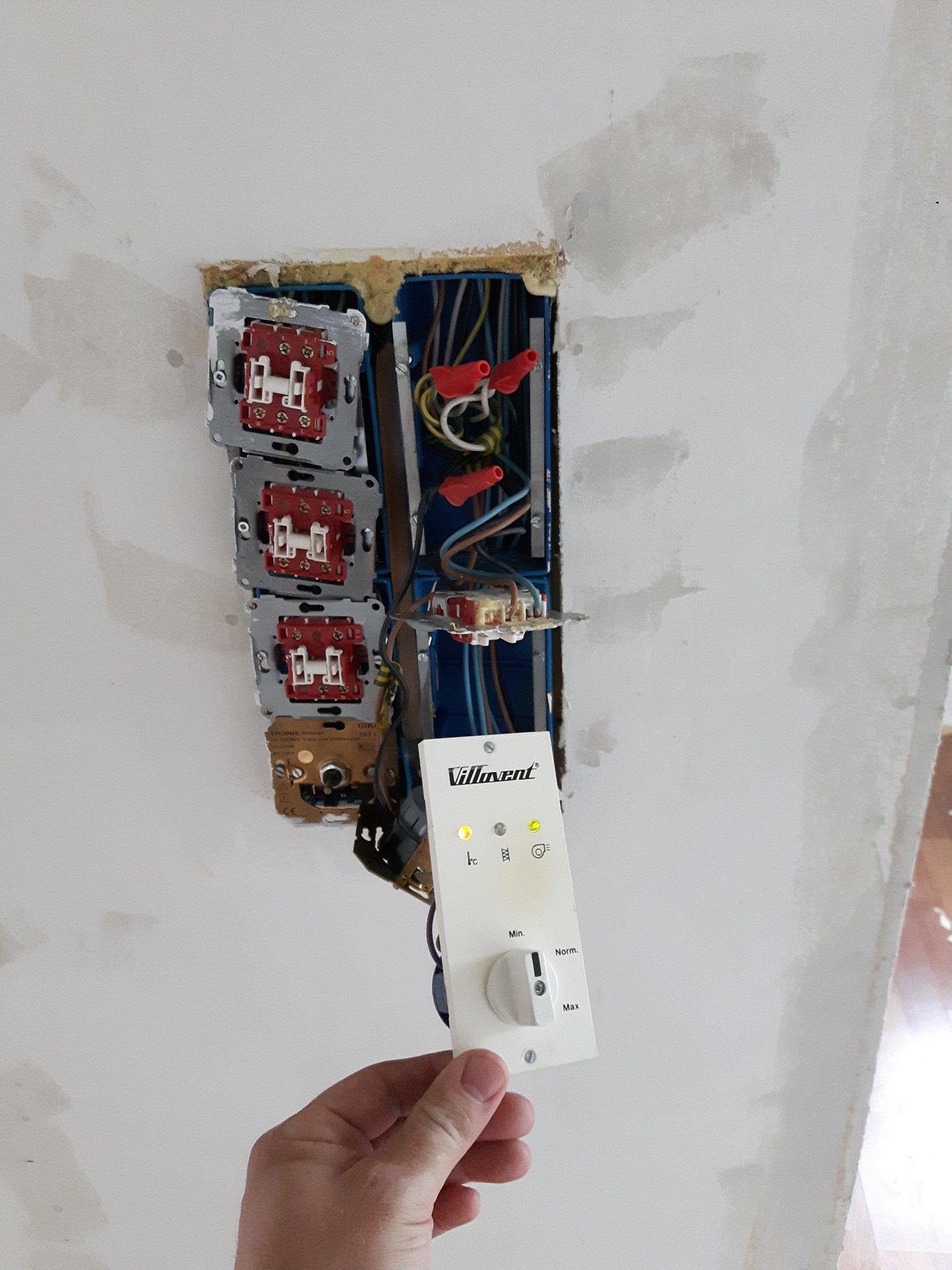 Hus fra 1998 med kaldloft. Totalrenovering av stue i hovedettasje. Mitt i glaningen på stuen er det en stor bryterrekke med 2x4 kombinasjonsramme. 2 av plassene her brukes av styringspanel til villavent. Alle brytere og villavent er gulnet og jeg ønsker å skifte til nye Elko plus brytere for å gjøre det litt penere. Blir da ikke så pent med et gulnet gammel villaventpanel mitt i den nye hærligheten.