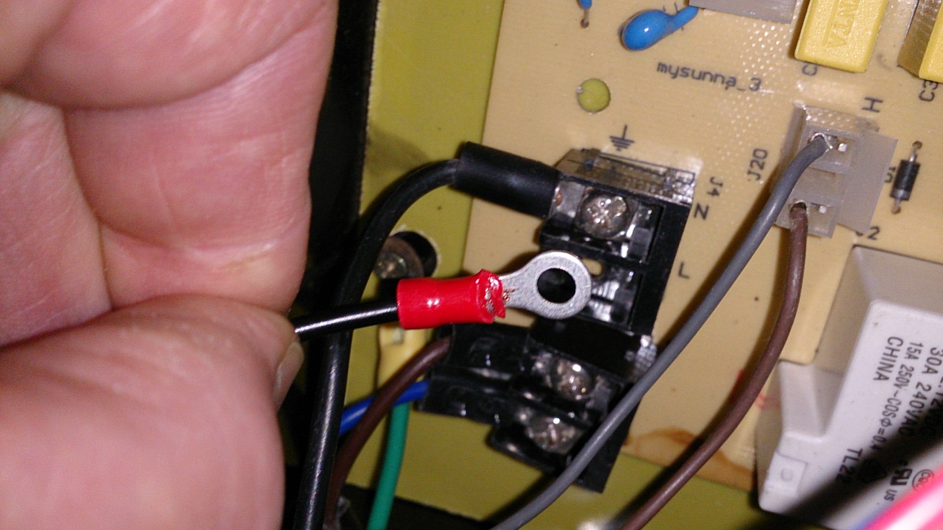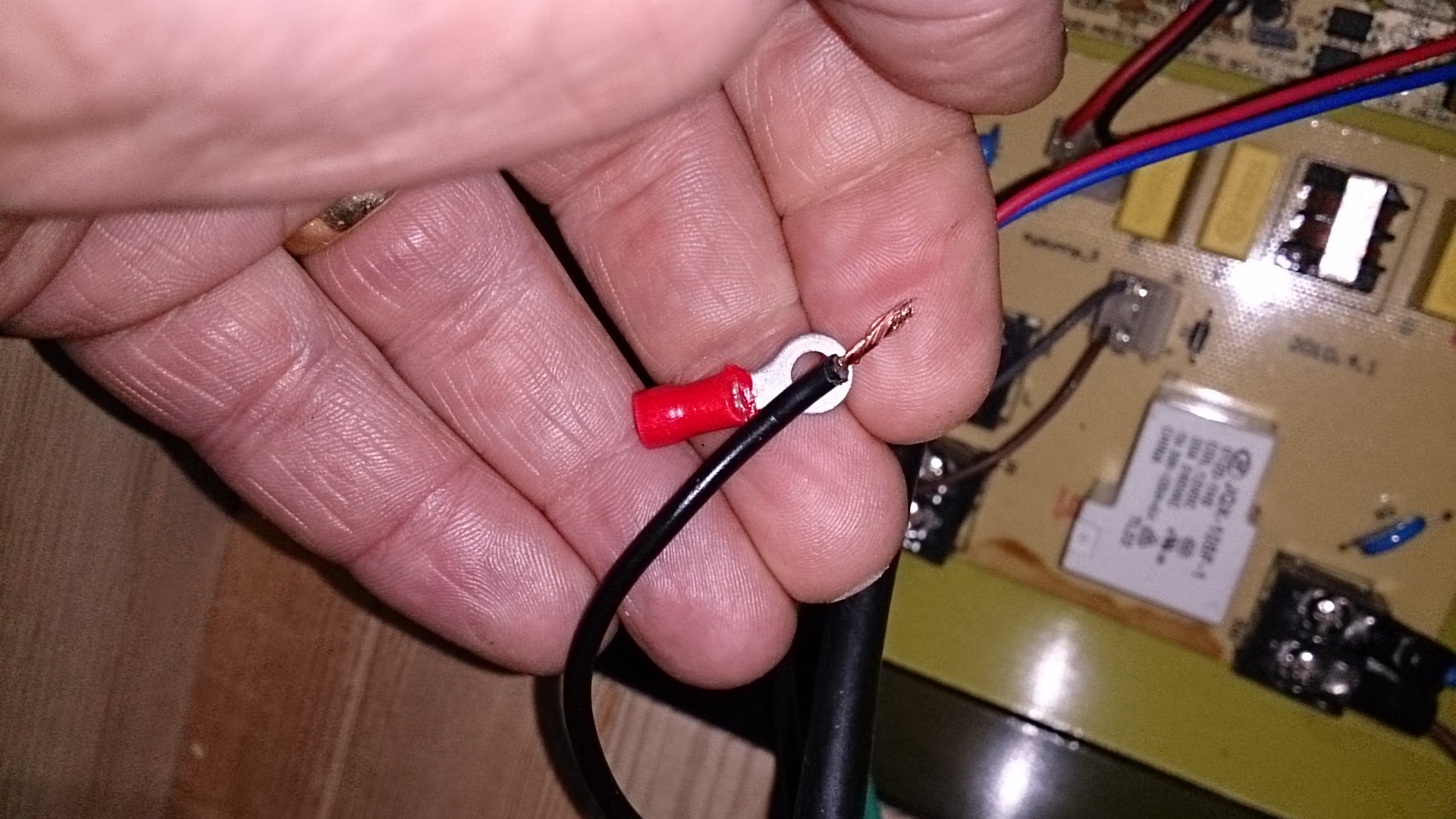 Har en "case" med en ny sauna: Satt den opp, koblet til, fikk kun varme i 2 av 8 elementer. Åpnet ene koblingsboksen, for å se at ledningen inn på en ringsko (er vel det det heter når en har kabelsko formet som en ring, beregnet for skruer) som står på et relé har løsnet/brent av. Dette er en ledning som går mellom relé på printkort og strømuttakene til elementene. Utfordringen her er at det går ganske store strømmer gjennom denne. Totalt bruker saunaen 2800W, og 6 av 8 elementer får strøm gjennom denne ledningen.